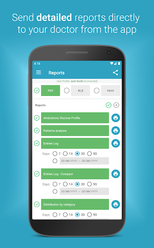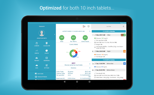 Designed for both smart phones and tablets, this application will help you manage your diabetes better and keep it under control. Whether you are Type 1 or Type 2, have Gestational Diabetes or just want to help and monitor a family member, this is the logbook app for you. The application tracks almost all aspects of the diabetes treatment and provides you and with detailed reports, charts and statistics. You can send the reports to your supervising physician via email. Diabetes:M also gives you various tools, so you can find the trends in blood glucose levels and allows you to get an insight about normal and prolonged insulin boluses using its highly effective, top-notch Bolus Advisor. It also has a vast nutrition database, to help you keep track of your food intake and nutrition information, as well as exercise time. Never forget another check with our simple but powerful reminders system. Diabetes:M can analyze the values from the imported data from various glucometers and insulin pumps via the exported files from their respective diabetes management software systems. Supports Wear OS smart watches. The Diabetes:M platform is CE certified as Class I Medical Device. IMPORTANT: DIABETES:M DOES NOT SUPPORT 14 DAYS US LIBRE SENSORS! PREMIUM SUBSCRIPTION FEATURES If you’re really serious about your health, our subscription plan includes: + No Ads – Subscribing removes all advertising from the app, so you can concentrate on what is important. + Bluetooth Integration – connects to some of the most popular bluetooth glucose meters. + 2 Additional Profiles – You can set up to two additional, fully featured profiles. This allows you to keep track of your loved ones (or even pets). + Additional lab result records - Add a comprehensive metabolic panel, kidney function tests and much more... + Expanded Food Database – This will allow greater access to server food database, as well as an option to save selected food as Meals and Dishes + Pattern Analysis – Advanced glucose analysis of logbook data with explanations for the most probable problem causes. + Synchronization – Automatically sync multiple devices on data change. Allows you to use any of your available mobile devices to keep track effortlessly. + Reports - Get your reports in PDF or XLS format