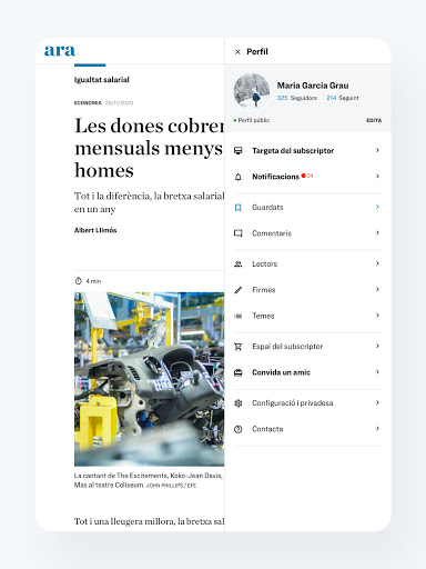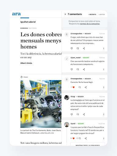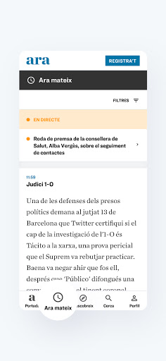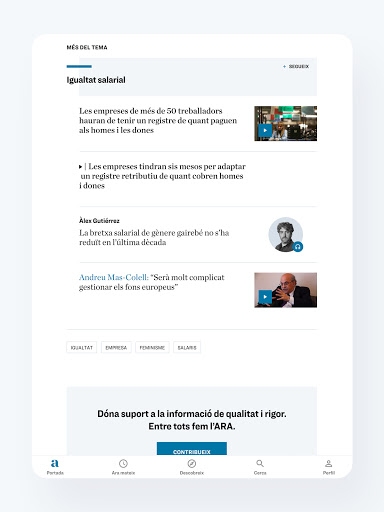 Fem un canvi i passem d\ara.cat a Diari ARA. A la nova aplicació posem en valor els continguts propis, els grans temes, les entrevistes extenses i totes aquelles propostes que volen acompanyar els lectors i anar més enllà del brogit de la informació diària. Sabem que actualitat és sinònim d’immediatesa i creiem que aquest objectiu ha de conviure amb el rigor periodístic. L’aplicació s’estructura en cinc seccions: - Portada: les notícies del dia agrupades en temes, curats i editats de manera actualitzada pel diari. - Ara Mateix: informacions breus sobre l’actualitat en temps real. Els continguts són gratuïts per a tots els lectors. - Descobreix: un espai per explorar continguts de lectura pausada, reflexius i atemporals que se seleccionen diàriament des de la redacció. - Cerca: per buscar articles mitjançant paraules clau o seccions. - Perfil: secció pròpia del subscriptor i lector registrat amb tota la seva activitat informativa. El lector pot gaudir de deu continguts mensuals a través d’un registre gratuït o bé comptar amb accés il·limitat a tots els continguts i avantatges de l’ARA mitjançant una subscripció. Ara la participació dels subscriptors és més important que mai. Podeu seguir-vos, mencionar-vos, reaccionar a altres comentaris i contestar-hi amb els vostres punts de vista. Tot això és essencial per enriquir el diari a través del debat. La qualitat i l’exigència dels comentaris són dos dels nostres actius i valorem moltíssim la vostra col·laboració.