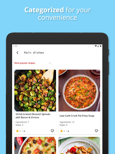 ️ Diet Recipes: Your Ultimate Companion for Healthy Eating Looking to embrace a healthier lifestyle without sacrificing flavor? Look no further than our Diet Recipes app! Packed with a plethora of delicious low-calorie recipes, from savory low-carb dishes to mouthwatering diet desserts, we\ve got everything you need to support your weight loss journey free. What We Offer: Diverse Recipe Collection: Explore a wide range of healthy recipes, including low-carb chicken, meat, and fish dishes, diet soups, low-fat appetizers, nutritious lunches, and guilt-free desserts. Whether you\re craving a hearty meal, a light snack, or a delicious dessert, we\ve got you covered. Detailed Instructions and Photos: Each recipe comes with clear, step-by-step instructions and vibrant photos, making it easy for you to recreate dishes at home with confidence. Easy Navigation: Our meals are neatly categorized for effortless browsing. Plus, our search function allows you to find tasty dishes by name or ingredients, ensuring you can quickly discover meals that suit your taste preferences and dietary needs. ️ Save Favorites: Keep track of your preferred recipes by adding them to your favorites. Planning to cook later? No problem! Save recipes for future reference for access them anytime, anywhere. Convenient Shopping List: Streamline your grocery shopping with our built-in shopping list feature. Simply add ingredients from any recipe directly to your list and check them off as you shop. Offline Access: Don\t let a spotty internet connection disrupt your cooking flow. Our app works offline, ensuring your favorite dishes are always accessible, whether you\re in the kitchen or on the go. Sample Recipe Highlights: Appetizers and Salads: Indulge in nutritious delights like Chicken Avocado Salad, Mediterranean Quinoa Salad, Low Carb Buffalo Cauliflower Bites. Main Dishes: From Chicken Cacciatore to Skillet-braised Brussel Sprouts with Bacon & Onions, our main dish healthy recipes are both satisfying and waistline-friendly. Desserts: Treat yourself to guilt-free desserts such as Crème Caramel, Peanut Butter Cookies, Diabetic Apple Pie, and satisfy your sweet tooth without derailing your diet. Satisfying Soups: Warm up with our selection of delicious soup recipes, including Creamy Sweet Potato and Cauliflower Soup, Spicy Asparagus Soup, Tortilla Soup, Low Carb Tomato Soup, and more. From light and refreshing to hearty and comforting, our soups are perfect for any occasion. Refreshing Drinks: Quench your thirst with our refreshing and low-calorie drink recipes, such as Berry Smoothies, Cucumber Mint Detox Water, Iced Green Tea with Lemon, Sparkling Raspberry Lemonade. Healthy Eating Made Easy: Discover new and exciting ways to eat healthily and deliciously with our extensive collection of weight loss recipes. Whether you\re following a low-carb, low-fat, or diabetic diet, our app has something for everyone. Expertly Curated Recipes: Our recipes are carefully selected and tested by nutritionists and culinary experts to ensure both flavor and nutritional value. With Diet Recipes, eating healthily has never been more enjoyable. Download now and embark on a flavorful culinary adventure towards your wellness goals!