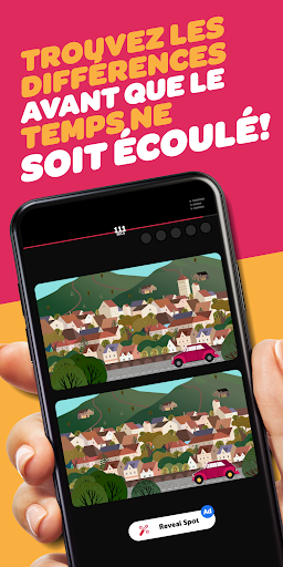 Différences infinies est un tout nouveau jeu d\énigme où vous comparez deux images pour trouver les différences cachées entre les deux photos. Une grande concentration est nécessaire pour déceler les différences entre les images, mais vous deviendrez plus rapide avec de la pratique ! Le téléchargement de Différences infinies est gratuit et chaque niveau est conçu avec expertise et comporte des scènes uniques créées pour exercer votre esprit. Le jeu est facile, mais avec tant d\énigmes, réussirez-vous à chercher et à trouver toutes les différences ? Comment jouer à Différences infinies : Au début d\un niveau, vous verrez deux photos semblant identiques, mais elles ne le sont pas ! Pour réussir un niveau, vous devez : – comparer les deux images – chercher de petites différences ou variations entre les deux photos ou scènes – toucher une des photos pour surligner la différence – trouver les 5 différences avant que le temps ne s\écoule ! Vous n\arrivez pas à terminer une énigme ? Regardez une petite vidéo pour obtenir un indice, si vous êtes bloqué(e) !