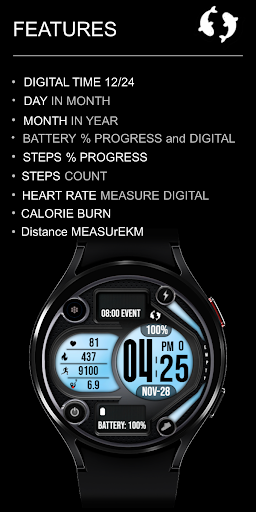 UNIQUE Digital Watch face with many featured and Animation of Fire! This Watch is piece of art on your wrist. it contain all info you need for daily use, Beautiful color combinations Animation of Fire with option On or OFF this animation 2 Customizable fields..., more read in full desc. below. ︎ FACE Quiz Link: https://play.google.com/store/apps/details?id=com.inspirewatchface.freequiz - Answer Questions & WIN Free Codes - Quiz Round - every week - Discover Free / Sales pieces ︎ Digital Informer Animated IN22 Phone App Features This phone application is a tool to facilitate installation the watch-face on your Wear OS Smartwatch. Only this mobile application contains adds! ︎ Watch-Face App Features - Digital Time including second - Day in Month - Month in Year - Battery percentage Digital and progress line - Heart rate measure Digital - By tabbing on area of HR zone you will measure your current HR - Steps count - Steps percentage progress - Steps icon does not open steps info! - Calorie burn - Distance measure KM unit Direct Application Launchers - Battery Status - Calendar 1 Customizable app launcher - Always ON Display supported - LOW OPR and unique look ANIMATION EFFECT - when you press area on screen it will show outner fire animation, by 1 tab - ON-OFF Customization: 1 - Touch and hold display 2 - Tap on customize option - 9 Display colors 10th option is animation of fire hidden under display 2 Customizable fields - you can choose feature from he wear os option list. *some features may not be available on some watches. Heart rate: Heart rate is automatically measured every 10 minutes by tabbing on HR area you will get measure your current HR Please make sure that the screen is turned on and that the watch is worn correctly on the wrist. ========================== I am Developer since 2019 with with over 400 watchface experience. My Faces can be found on Galaxy Store, Playstore, and Huawei Health store! Achievements: Huawei Store: Best of Huawei Themes Award 2021- 1st. Place Best Hybrid Watchface Style (Top 10 Seller) Award Ceremony video link: https://www.youtube.com/watch?v=4ZY5kq7vBL4 Galaxy Store: ( TOP 50 seller) SOCIAL MEDIA LINKS: Web PAGE: https://inspirewatchface.com TELEGRAM: https://t.me/WearOswatchfaces FACEBOOK: https://www.facebook.com/Digital.Unity.Watch/ INSTAGRAM: https://www.instagram.com/digital.unity.watch/ =========================== Installation Notes: In case you face issue with installing this watchface follow notes below or Installation guide made by Samsung: Installation Guide link: 99) Install Wear OS Powered by Samsung Watch Faces - YouTube https://www.youtube.com/watch?v=vMM4Q2-rqoM&t=2s 1 - Ensure that the watch is properly connected to the phone After a few minutes the watch face was transferred on watch : check the watch faces installed by the Wearable app on the phone. or 2 - If you are having synchronization issues between your phone and Play Store, install the app directly from watch: search \Analog Neon\ from Play Store on watch and hit on install button. 3 - The last option is to install the watch face from web browser on your PC. Please consider that any issues on this side are NOT developer dependent. The developer has no control over the Play Store from this side. Million times Thank you !