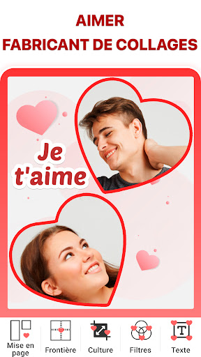 Regroupez vos photos préférées dans un magnifique collage ! Love Collage est une application de collage qui transforme vos photos en un chef-d\œuvre. Tout ce qu\il vous faut, c\est de l\imagination. Créez un collage avec deux photos, voire plus, ou faites une carte postale avec un cadre romantique. Supprimez en un seul clic les personnes et objets indésirables, retouchez les visages et les corps de manière réaliste pour sublimer votre photo et insuffler l\amour. Sélectionnez un beau cadre photo, ajoutez de jolis autocollants, plus de 100 filtres tendance pour les photos et créez votre propre collage unique. N\oubliez pas d\écrire quelques belles paroles ou de placer du texte sur une photo pour exprimer vos sentiments! Love Collage est l\outil de retouche photo dont vous rêviez. Spécificités de Love Collage: OUTIL DE COLLAGE PHOTO Regroupez vos photos dans un collage éclatant Choisissez parmi plus de 100 mises en page et grilles pour combiner les photos Exprimez vos émotions en partageant le collage avec votre bien-aimé ou vos amis Partage instantané et facile via Instagram, Facebook, WhatsApp, SMS, etc. CADRES PHOTO Sélectionnez le meilleur cadre de collage pour votre photo Utilisez des cadres photo spéciaux pour la Saint-Valentin, Noël, le Nouvel An, Halloween, la fête des mères, etc. Changez le cadre si vous souhaitez multiplier les déclarations d\amour Ajoutez des cadres sur la photo avec votre bien-aimé, vos enfants ou toute la famille AUTOCOLLANTS ET TEXTES Essayez plus de 200 jolis autocollants Créez une carte-cadeau avec des déclarations d\amour telles que «je t\aime», «tu me manques», etc. Sélectionnez la police, la taille et la couleur de votre texte. FILTRES ET EFFETS D\AMOUR Amusez-vous avec de super filtres pour les photos Essayez l\effet d\éclaboussure en forme de cœur Ajoutez des superpositions sur le thème de l\amour Utilisez un, deux ou plusieurs effets sur une photo Contrôlez l\intensité du filtre à l\aide d\un curseur Transformez votre photo ordinaire en une photo tendance ou une déclaration d\amour MISE EN PAGE Sélectionnez une mise en page avec des cœurs pour créer un collage d\amour Regroupez deux à neuf photos dans un seul collage RETOUCHE DE SELFIES Retouchez facilement votre visage grâce aux fonctionnalités de beauté Supprimez les imperfections et les pores dilatés grâce à l\application de retouche Changez de couleur de cheveux et passez du blond parfait au rose déjanté Affichez une peau éclatante en supprimant les rides, les cernes et l\acné Corrigez les traits de votre visage : affinez-le, mettez en valeur vos yeux et appliquez du rouge à lèvres pour un maquillage naturel Blanchissez vos dents pour un sourire éclatant dans notre application pour le visage Arrière-plan flou pour obtenir un portrait professionnel SUPPRESSION D\OBJETS ET DE PERSONNES Supprimez les objets et les personnes indésirables en un seul clic Mettez en surbrillance tous les objets qui doivent être supprimés, puis appuyez sur le bouton magique pour les éliminer Éliminez les passants, les ordures, les personnes indésirables Laissez-vous surprendre par la qualité avec laquelle notre outil intelligent efface tous les objets REMPLACEMENT DE L\ARRIÈRE-PLAN Supprimez l\arrière-plan inapproprié Placez votre photo sur des modèles d\arrière-plan étonnants ou utilisez l\arrière-plan de votre choix Utilisez très facilement la gomme et le suppresseur d\arrière-plan RETOUCHE DE CORPS Corrigez facilement et rapidement votre corps : les hanches, la taille et tout le reste Notre outil de collage photo possède une interface intuitive et inspirante qui vous aidera à révéler votre créativité. Ouvrez l\application et lancez-vous : modifiez la mise en page, ajoutez du texte aux photos, créez un collage, sélectionnez des filtres, ajoutez des autocollants, utilisez des effets et amusez-vous! Love Collage est un formidable outil de retouche et de collage photo. Créez des collages, retouchez des photos et partagez vos preuves d\amour!