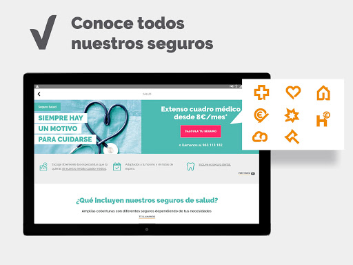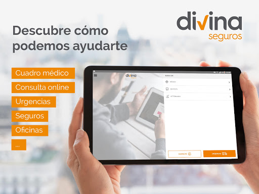 A través de la aplicación gratuita de Divina Pastora Seguros podrás consultar de forma fácil, cómoda y rápida nuestro cuadro médico, nuestras oficinas y productos. Además, podrás contactar con tu médico mediante chat o videollamada. - Busca tu médico por especialidad y proximidad, con la posibilidad de localizarlo en el mapa (ruta a pie y en coche desde tu posición). - Consulta el cuadro médico general, cuadro médico dental y veterinario. - Accede a los principales teléfonos de contacto y urgencias. Correo electrónico. - Encuentra la oficina más próxima a ti - Obtén información actualizada de todos nuestros productos y servicios. - Lleva siempre contigo las tarjetas sanitarias virtuales y consulta desde el área privada tus productos contratados. Divina Pastora Seguros No te detengas.
