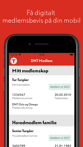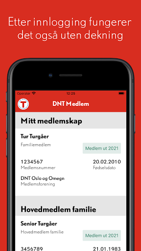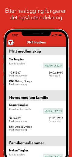 Er du medlem i Den Norske Turistforening (DNT)? Da kan du laste ned denne appen og ta med deg ditt digitale medlemsbevis når du er på tur. Eventuelle husstandsmedlemmer tilknyttet ditt medlemskap vil også vises. Etter innlogging fungerer også appen uten mobildekning. For å se medlemskortet ditt må du logge inn med ditt mobilnummer eller din e-postadresse registrert i DNTs medlemssystem.