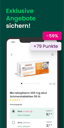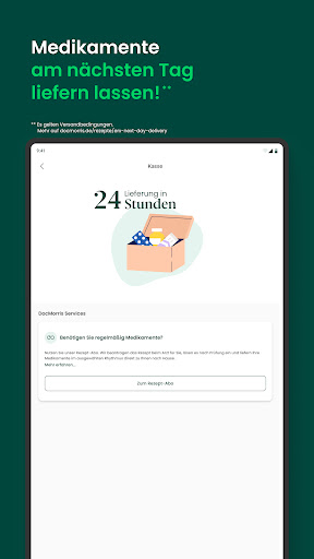 Seit über 20 Jahren liefern wir deutschlandweit Apothekenprodukte aus einem umfassenden Sortiment unseren Kunden zuverlässig direkt ins Haus. Dabei erhalten Sie rezeptfreie Produkte zu besonders günstigen Preisen. Natürlich können Sie auch Rezepte bei uns einlösen: ein klassisches Rezept auf Papier senden Sie uns einfach per Post oder lösen Ihr E-Rezept mühelos mit dem E-Rezept Scanner digital in der App ein. DIE VORTEILE DER DOCMORRIS APP • In der App profitieren sie von zahlreichen exklusiven App-Angeboten, wie zum Beispiel Rabatte auf ausgewählte Produkte und Kategorien. • Mit der DocMorris App können Sie jetzt noch schneller rund einfacher Ihr E-Rezept bei uns einlösen. Einfach Gesundheitskarte scannen, Medikamente bestellen, fertig! • ¹Jetzt Arzneimittel und verschreibungspflichtige Medikamente in der App bei unseren Partner-Apotheken bestellen und noch am selben Tag geliefert bekommen (Ein Service der DocMorris Services B.V.). Momentan bieten wir diesen Service in ausgewählten Städten an, jedoch arbeiten wir mit Hochdruck an der Ausweitung der Gebiete mit Expresslieferung! • Mit unserer Online-Arzt Funktion holen Sie sich Ihren Arzt bequem und kontaktlos über die führende Telemedizin Plattform Teleclinic per Video-Call nach Hause. Unser Sortiment von über 150.000 Apothekenprodukten bietet eine große Auswahl in den folgenden Bereichen: • Allergien & Unverträglichkeiten • Erkältung & Grippe • Hauterkrankungen & -verletzungen • Raucherentwöhnung • Gelenk- & Gliederschmerzen • Schwangerschaft & Kinderwunsch • Vitamine & Mineralstoffe • Diabetikerbedarf • Kosmetik und Vieles mehr. Und das ist erst der Anfang, denn für unsere App sind viele weitere innovative Funktionen und Aktionen geplant, um Ihren Besuch bei DocMorris noch besser zu gestalten. Dabei ist uns Ihr Wohlergehen wichtig. Deshalb können Sie sich für Fragen zu Ihren Bestellungen oder zur pharmazeutischen Beratung für Ihren Apothekeneinkauf an unseren diskreten und kompetenten Support per Telefon oder Kontaktformular wenden. DocMorris Falls Sie Fragen, Anregungen oder Probleme haben, können Sie uns jederzeit unter service@docmorris.de kontaktieren. _____________________________________________________ *Der Gutschein kann nur im Rahmen einer digitalen Einlösung eines gültigen Kassenrezeptes in der DocMorris App verwendet werden (gilt nicht für Privatrezepte, Rezepturen und Freitextrezepte). Voraussetzung für die Einlösung des Gutscheins ist ein Kundenkonto bei DocMorris und ein Smartphone mit der DocMorris App. Einmalig einlösbar auf das Gesamtsortiment (ausgenommen Säuglingsanfangsnahrung und preisgebundene Artikel, bspw. Bücher) inklusive reduzierter Ware. Nicht einlösbar beim Kauf von Produkten, die über den DocMorris Online-Marktplatz bei anderen Anbietern erworben werden sowie Same Day Delivery-Bestellungen. Gültigkeit der Gutscheinaktion und des -codes: Bis 31.12.2024. Nicht kombinierbar mit weiteren Aktionen oder Preisvorteilen, z.B. Sonderpreisen, die exklusiv über Dritte ausgelobt werden. Bei Eingabe eines Gutschein(code)s kann ein höherer Preis als der Sonderpreis zu Grunde gelegt werden. Ein den Rechnungsbetrag übersteigender Gutscheinwert verfällt. Die Auszahlung des Gutscheinwerts ist ausgeschlossen.