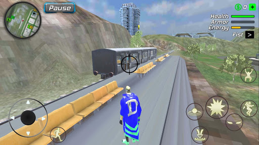 Vous êtes le héros de la ville confrontée à des problèmes de criminalité. Pour résoudre ces problèmes, vous pouvez utiliser vos capacités électriques telles que le faisceau laser de votre main ou vous pouvez soulever des objets du sol et les écraser sur le sol. Vous avez une chose très spéciale - vous pouvez voler. Il y a plusieurs magasins. Vous pouvez visiter l\armurerie et acheter à partir d\une très large gamme d\armes. Vous pouvez aller au magasin de vêtements et choisir une nouvelle robe pour vous. Vous pouvez aller à la boutique de skate et obtenir une nouvelle peau sur votre planche à roulettes. Vous gagnez de l\argent en accomplissant des missions. Vous pouvez également obtenir de l\argent de mauvaises personnes que vous tuez. Vous pouvez tenter votre chance et pirater un guichet automatique. Ou vous pouvez également acheter un stock sur un marché boursier. Il y a plus de 50 voitures, vélos, planches à roulettes, etc. Vous pouvez vous rendre au port aérien et acheter un avion. Êtes-vous prêt pour une grande aventure anti-criminelle? Voler des voitures, courir dans les rues et abattre des gangsters. Vous pouvez également acheter beaucoup de choses dans une boutique pour vous aider à terminer les missions et libérer la ville de tous les pécheurs mafieux. Vous pouvez également travailler comme chauffeur de taxi ou ramasseur d\ordures ou pompier. Devenez un chef dans les rues de la lutte contre la criminalité en ville. Il y a plusieurs maisons que vous pouvez y acheter et y vivre. Il existe plusieurs emplois qui peuvent vous rapporter de l\argent. Vous pouvez être coiffeur, si vous choisissez le bon look pour votre client. Ils vous donneront de l\argent supplémentaire. Vous pouvez aussi être chauffeur de taxi, pompier, flic, chauffeur de bus. Dans des endroits spéciaux de la ville, vous pouvez trouver des robots très puissants et vous aider à terminer vos missions. Explorez la grande ville, partez hors route vers les montagnes, volez et conduisez de super voitures, tirez avec des armes à feu et plus encore dans ce jeu gratuit en monde ouvert. Devenez l\espoir du citoyen comme norme de justice, ou venez en ville comme nouveau chevalier du destin. Le style de la ville est similaire à Miami ou à Las Vegas, mais en réalité c\est New York. Vos jambes sont également très puissantes. Ne les sous-estimez pas. Ne plaisante pas avec la police, ce sont les bons. Dominez la ville avec une puissance de feu dévastatrice de véhicules militaires avancés ou améliorez votre héros pour abattre les ennemis en quelques coups de pied! Que ce soit une belle ville, ne vous transformez pas en ville criminelle avec du sang et des vols. Vous jouez est un héros / légende et toute la ville vous craint. Vous pouvez tirer une corde vers un bâtiment et grimper sur le bâtiment jusqu\au sommet. Vous avez de vrais pouvoirs spéciaux. Vous pouvez tirer un rayon laser dangereux de votre main. Vous êtes un Powerhero. Vous combattrez divers gangsters mafieux d\Amérique, de Russie, de Chine, du Mexique, du Japon, etc. Le jeu contient un environnement mondial entièrement ouvert. La plupart des missions se dérouleront dans les rues, certaines dans le quartier chinois et d\autres gangs, etc. • Graphiques de qualité HD époustouflants • Arsenal d\armes à feu • vous pouvez jouer comme coiffeur, chauffeur de taxi, etc. • Trouvez des robots mech futuristes • 20 missions passionnantes • 50 voitures différentes - modèles de véhicules de l\armée, hélicoptère, chasseur aérien, etc. • vous pouvez monter sur une planche à roulettes