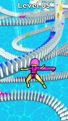 Surf along the domino waves as they collapse under your board. Push the other surfers off-track to eliminate them. Jump off the track to cut ahead of the others. Find the smartest shortcuts when no one else dares to jump. This is how you win the domino surf contest.