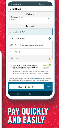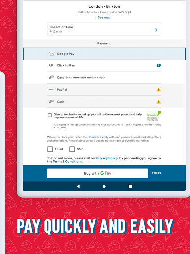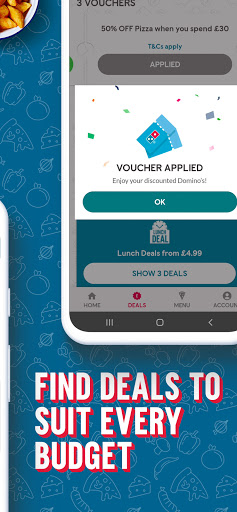 When you want pizza, you really want pizza. Luckily, our app is the quickest and easiest way to order one with a whole host of exclusive features. Want to know more? Course you do… ORDER PIZZA Scroll through our easy-order menu and treat yourself to an all-time classic or discover something new! You can even Create Your Own customised creation, give it a name and save it for next time. DELIVERY OR TAKEAWAY Whether you want to collect from your local store or have your pizza delivered to your door, our app’s got you covered. With stores up and down the country, you’re sure to find a Domino’s Pizza near you. EXCLUSIVE PIZZA DEALS If deals are your thing, you’ve come to the right place (almost). Download our app and you’ll find dozens of exclusive pizza deals to suit any budget (and any occasion). You can even add your vouchers to bag discounts on your order! GROUP ORDERING If you need to order pizza for the whole fam, you can set up a group order to make ordering for the gang a doddle. Just send them an invite, let them choose what they want and it’ll get added to the order! PRE-ORDERING If you know you want pizza later, but you’re ready to order now…no worries. Get your order in early, let us know when you want it, and we’ll do the rest. Oh, and if you know you want the same as last time, you can just choose it from your order history! PAYMENT Oh, and when it comes to settling up, you can pay pretty much however you like…using card, PayPal or with just a few taps thanks to Apple Pay. Plus, you can keep an eye on your pizza’s progress with our trusty pizza tracker. So, if you haven’t downloaded our app yet, you’re missing out on everything you love about Domino’s and so much more. Hit the link to download now and see it with your own eyes! By downloading and using this app, you confirm that you accept our Terms and Conditions, Privacy Policy and Cookie Policy too. https://www.dominos.co.uk/legal/content/termsandconditions https://www.dominos.co.uk/legal/content/privacypolicy https://www.dominos.co.uk/legal/content/cookiepolicy