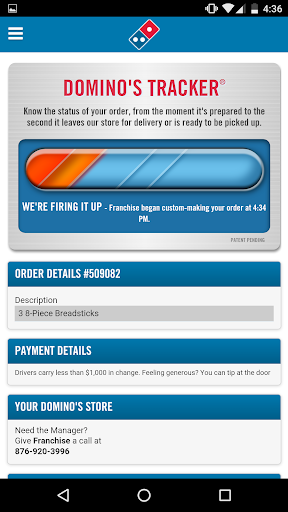 Conveniently order Domino’s from anywhere on your Android phone and tablet. Build your Domino\s pizza just the way you like it or choose one of our pre-built pizzas. Add items from the rest of our robust menu. And with the Domino’s Tracker you can follow your order from the moment you place it until it’s out for delivery, dine-in, carryout or pickup. FEATURES: · Create a Domino\s Pizza Profile to easily access to your saved info and recent orders (not required) · Order faster than ever by creating an Easy Order! · Use Domino’s Tracker to follow your order until it’s out for delivery or ready for pickup!