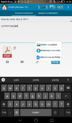 Vous pouvez facilement utiliser l’application Android pour les dossiers médicaux, pour la tenue des dossiers médicaux, les données médicales et les antécédents du patient, ainsi que pour les informations sur la santé. Caractéristiques: * Selon vos besoins, choisissez de stocker vos données médicales dans la mémoire de votre appareil ou sur un stockage cloud sécurisé où la synchronisation des données est activée. - l’utilisation d’un nom d\utilisateur de la fonction de présence et d’un mot de passe pour préserver la vie privée - Vous pouvez extraire des données vers Excel - Vous pouvez joindre des documents de tout type de fichier (pdf, word, etc ...) ou directement enregistrer à l\aide des cartes Google. - La possibilité d\utiliser Google Maps pour rendre visite au patient conformément à l\adresse de la boutique - Stockage des antécédents médicaux - Stockage des analyses médicales basées sur les observations du médecin avec la possibilité d\attacher l\originale des analyses - stockage des Radiographies demandées par le médecin avec la possibilité de stocker les originaux - stockage des données sur les médicaments utilisés par la personne - Indiquer les dates pour les patients - Recherche par nom ou le numéro, vous pouvez prendre une copie du dossier personnel du patient - prendre des vidéos ou prendre des photos avec les rapports médicaux attachés. - visionneuse vidéo pour visualiser des scènes médicales prises en vidéo - prendre les rapports médicaux qui seront stockés sous la forme d\une image ou une vidéo de Galerie de photos - La possibilité d\ajouter des informations sur le patient en communiquant avec la liste des périphériques, si l\information du patient est une liste de noms de périphériques - Les médecins peuvent utiliser cette application d\Android comme un système d’information d’une clinique médicale ou système d de gestion système de gestion des cliniques médicales ou comme système de données des patients - système de dossiers médicaux, l\application de téléphone pour les soins de santé, application mobile patients des dossiers médicaux pour application - Contrôlez votre tension artérielle - Rapports PDF sur votre tension artérielle - Les graphiques pour comparer les mesures de pression artérielle - Mesures systoliques, diastoliques, pouls - Exporter les rapports de pression artérielle vers PDF ou Graphs - Envoyer des rapports de tension artérielle à votre docteur - Rapports PDF sur votre glycémie - Exporter les rapports desucre dans le sang au format PDF ou Graphiques - Envoyez les rapports de glycémie à votre médecin - application téléphone pour la tenue des dossiers médicaux électroniques (DME) et pour la tenue des dossiers de santé électroniques (DSE) . - Pratique pour stocker les antécédents médicaux des membres de la famille et rend donc plus facile pour vous et votre médecin de garder trace de vos informations et remonter à l\histoire médicale du patient