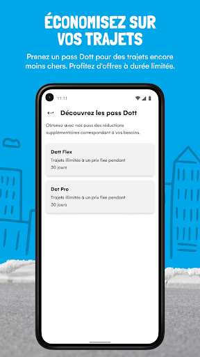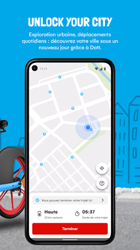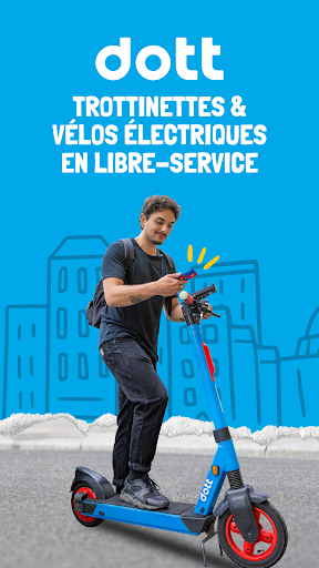 Téléchargez l\application, trouvez une trottinette ou un vélo Dott à proximité et partez à l\assaut des grands espaces, à votre façon. Découvrez Dott Pratiques et sûrs, nos véhicules facilitent pour les Européens le choix d\un mode de déplacement écologique. Il suffit de s\inscrire pour rouler librement au milieu des embouteillages et arriver à l\heure à destination - le tout pour bien moins cher qu\avec un taxi ou une voiture partagée. Comment ça marche Nos trottinettes et nos vélos aux couleurs vives sont pratiques, neutres sur le plan climatique et disponibles 24 heures sur 24, 7 jours sur 7 pour vous amener rapidement là où vous voulez aller. Pour commencer : 1. Téléchargez l\application Dott 2. Ouvrez le plan pour trouver un véhicule à proximité 3. Scannez le code QR pour le déverrouiller - et c\est parti ! Astuce : sélectionnez un abonnement ou une réduction juste après le déverrouillage pour économiser sur votre trajet. Pour terminer votre trajet : 1. Ouvrez l\application 2. Trouvez une place de parking dédiée sur le plan 3. Profitez du reste de votre journée ! Économisez avec un pass Dott ou payez au trajet Avant de commencer un trajet, vous pouvez choisir votre réduction pour économiser sur vos déplacements. Jetez un œil aux pass Dott à la journée, à la semaine ou au mois, ou payez au trajet et optez pour un pass lors de votre prochaine utilisation. En termes de réductions, vous aurez le choix entre les promos que vous aurez ajoutées, les bonus de parrainage obtenus ou les offres locales à durée limitée - c\est vous qui décidez ! La sécurité avant tout Lorsque vous roulez, protégez-vous et protégez les autres : * Roulez sur les pistes cyclables ou sur la route. * Garez-vous toujours sur les zones de stationnement réservées * Protégez votre tête : portez un casque * Gardez les yeux sur la route * Pour plus de conseils, consultez notre FAQ dans la rubrique Aide & contact de l\application Pourquoi choisir Dott ? Nous nous sommes donné une mission : proposer une mobilité durable et accessible à tous - pour une ville apaisée. Grâce à nos trottinettes et à nos vélos abordables et accessibles, nous nous efforçons de rendre les villes moins polluées et moins encombrées. En changeant aujourd\hui votre manière de vous déplacer, vous avez un impact positif sur les générations à venir. Dott est le moyen de transport parfait pour : * Se rendre à un dîner entre amis * Aller au travail * Aller en cours * Se rendre à un rendez-vous * Explorer sa ville ou visiter d\autres pays Où nous trouver Dott est actuellement disponible dans 7 pays d\Europe. Vous aimeriez voir Dott dans votre ville ? Envoyez-nous un message à support@ridedott.com. Bonne route !