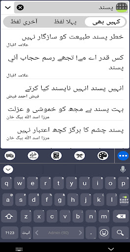 Now you can edit your photos and pictures with Urdu text. Urdu speech to Urdu text. Also Urdu speech to English text translation. Now you can write Urdu in anywhere easily. And yes, it is very very easy. Just type using provided keyboard. Also it is two in one keyboard so you can also type in English without changing the keyboard. اب آپ لکھ سکتے ہیں اردو کسی بھی ایپلیکیشن میں۔ اور یہ ہے اب بہت ہی آسان۔ بس ٹائپ کریں اس کی بورڈ سے۔ Freely type in Roman English keyboard and proper Urdu words will appear automatically. آسانی سے ٹائپ کریں رومن اردو میں اور وہ خود نستعلیق اردو الفاظ میں تبدیل ہو جائیں گے۔ Features: ★ Optional Urdu layout. (ا ب پ) ★ اردو الفاظ والا کی بورڈ ★ Next word suggestions ★ اگلا لفظ خود بتائے ★ Works offline most of the time. (Requires less internet) ★ انٹرنیٹ کنکشن کی کم سے کم ضرورت Shows Urdu as you type. ★ ٹائپ کرتے ہوئے اردو دیکھئے ★ Ability to disable keyboard ★ جب چاہیں کی بورڈ ڈس ایبل کر دیں ★ English Keyboard with Dictionary and correction. ★ انگریزی کی بورڈ ڈکشنری اور اصلاح کے ساتھ ★ EMOJI keyboard added ★ اموجی کی بورڈ ★ Easy Paisa payment option for Pakistan ★ پاکستان کے لئے ایزی پیسہ کا آپشن ★ Send short messages, greetings and Islamic quotes using new Fori Peghaam feature ★ فوری پیغام کے ذریعے شارٹ میسیجز ، مبارک باد میسیجز اور اسلامک میسیجز بھیجے جا سکتے ہیں ★ Get Urdu word suggestions offline while writing urdu. ★ Read latest news and updates in Urdu with Urdu News feature. Now national , International and sports news is just a click away. Easy Urdu Keyboard can be used on any app including Facebook, Whatsapp, Twitter, Snapchat, LinkedIn, Instagram and many more. ایزی اردو کی بورڈ کو کسی بھی ایپ میں استعمال کیا جا سکتا ہے، مثلاً فیس بک، واٹس ایپ، ٹویٹر، اسنیپ چیٹ، لنکڈ ان، انسٹاگرام اور بہت سی اور. ★★ Easy Urdu is completely free. Optionally ads can be removed by purchasing ★★ Urdu on Photos It lets you create contacts in Urdu. Send SMS in Urdu Post Urdu in Facebook. Search google in Urdu Send Urdu messages using WhatsApp, Facebook, Google Hangouts, Line, Viber or any other app installed your phone. Send emails in Urdu.