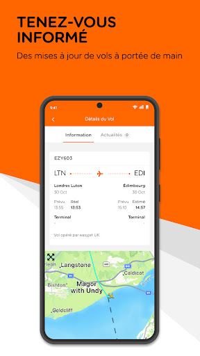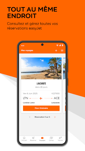 Où que vous alliez, emmenez-nous avec vous. Recherchez, réservez et gérez vos vols à tout moment et en tout lieu. RECHERCHER ET RÉSERVER DES VOLS : recherchez et réservez un voyage vers votre destination européenne préférée. GÉRER DES RÉSERVATIONS DE VOL - Suivez vos réservations de vol easyJet à un même endroit. CARTES D’EMBARQUEMENT MOBILES – Utilisez votre carte d’embarquement mobile pour vous déplacer dans l’aéroport rapidement, faciliter l’embarquement et réduire le gaspillage de papier. Vous pouvez sauvegarder jusqu’à huit cartes d’embarquement par vol. Celles-ci seront disponibles hors ligne, et donc sans besoin de connexion Internet. Pour encore plus de commodité, vous pouvez également enregistrer votre carte d’embarquement sur Google Wallet. FLIGHT TRACKER – Suivez le déplacement de votre avion en temps réel. Suivez aussi de près les toutes dernières informations sur les vols à l’arrivée et au départ. Vous voyez également le trajet de votre avion, en direct dans les airs, en ajoutant la carte FlightRadar24.