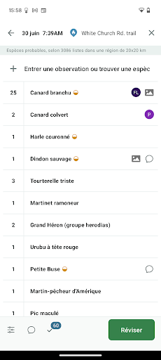 eBird Mobile vous permet de noter facilement les oiseaux que vous observez sur le terrain, et d\exporter aisément ces observations vers eBird – une base de données mondiale utilisée par des centaines de milliers d’observateurs d’oiseaux à travers le monde. Cette ressource gratuite vous permet de conserver une archive de vos propres observations, tout en rendant vos données disponibles pour la recherche scientifique, l’éducation et la conservation. eBird Mobile est la seule application qui transfère directement vos observations depuis votre appareil Android vers votre compte eBird sur Internet. Caractéristiques - Inscrivez vos observations d’oiseaux depuis n’importe quel endroit dans le monde. - Taxonomie mondiale complète basée sur la liste des oiseaux du monde de Clements. - Noms communs des oiseaux disponibles dans plusieurs langues (p. ex. noms portugais disponibles pour les espèces du Brésil ou du Portugal). - Listes d’oiseaux adaptées à votre lieu d’observation et au moment de l’année, affichant les espèces les plus susceptibles d\être observées selon les données d\eBird. - Observations d’oiseaux rares signalées lors de l’entrée de données. - Mode d’entrée de données en « temps réel » vous permettant d’ajouter des observations à mesure qu’elles sont faites sur le terrain. - Localisation de vos sites d\observation via le GPS afin d\assurer la précision. - Outil cartographique permettant de choisir parmi des centaines de milliers de « sites publics » (eBird hotspots). - Mode hors connexion disponible, offrant une fonctionnalité complète dans les endroits sans connexion Internet. - Fonction « Bilan d’excursion » permettant de suivre facilement votre liste d\espèces observées pendant votre excursion d\une ou de plusieurs journées. - Application entièrement traduite en allemand, mandarin, français, espagnol, portugais (Brésil) et turc.
