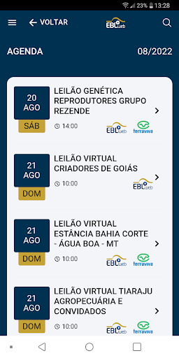 Não consegue acompanhar todos os leilões pela TV? Que tal assistir diretamente do seu celular e dar seu lance com um clique? A Estância Bahia Leilões, que é referência nacional em leilões de gado apresenta o EBL Web! Este app facilita a participação do pecuarista e o atualiza com as datas dos leilões. Você pode dar lances pelo seu smartphone de qualquer lugar que esteja. Desde 1991 no mercado de leilões, a Estância Bahia é liderada por Maurício Tonhá e, em toda a sua trajetória, estabelece parcerias com seus clientes, fornecedores e colaboradores, buscando o crescimento e a satisfação através do trabalho, ousadia, motivação e amor. Com a intensificação dos leilões virtuais a partir de 2014, a Estância Bahia segue com seu objetivo de promover comodidade ao pecuarista na hora de participar dos leilões, estando presente pessoalmente ou não. Além das facilidades durante os leilões, o aplicativo EBL Web conta com notícias e agenda para atualizar os compradores e vendedores sobre as atividades da Estância Bahia. Profissionalismo e transparência em todo o processo de compra e venda.
