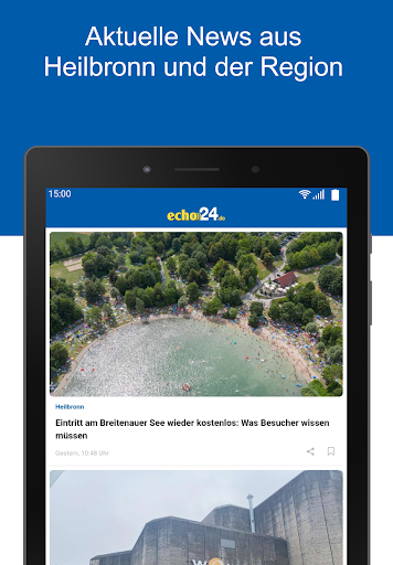 Die kostenlose App von echo24.de – das Nachrichten- und Boulevardportal für Heilbronn, die Region und Baden-Württemberg. Schnell, stets am Puls der Zeit und mit spannenden Themen bietet echo24.de ein komplettes Nachrichten- und Serviceangebot rund um aktuelle News, Wetter, Service und TV-Themen. Aus unserem Newsroom in Heilbronn berichten wir unter anderem über aktuelle Ereignisse wie Polizeieinsätze aus der Heilbronn und der Region und Baden Württemberg. Ob Verbraucherthemen bei Kaufland und Lidl die neuesten Verbrauchertests oder alles Wichtige rund ums Autofahren – mit der echo24.de-App bist Du rund um die Uhr bestens informiert. Immer aktuell informiert mit der echo24.de-App Von hier. Wie hier.