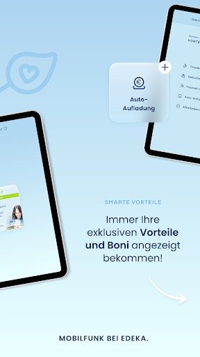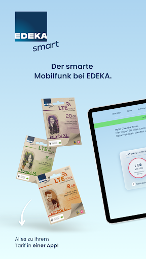 Mit der kostenlosen EDEKA smart-App können Sie alle wichtigen Details zu Ihrem EDEKA smart-Tarif auf einen Blick einsehen und ändern. Die EDEKA smart-App bietet Ihnen folgende Funktionen: - Datenvolumen, Inklusivminuten und SMS einsehen - Bequem aufladen – einmalig, automatisch oder mit einem Aufladecode - Tarif einsehen und wechseln - Optionen buchen, wechseln und kündigen - Kundendaten einsehen und ändern Einfach mit Ihrer Rufnummer und Ihrem Kundenportal-Passwort einloggen. Wir wünschen Ihnen viel Spaß mit unserer App! Ihr Team von EDEKA smart