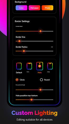 Do you like a colorful phone? Android phone with LED effects running around the screen? A unique phone with your own colors? Here it is. Edge Lighting Color with effects that run around the edge of your phone. You can immediately use the templates available for your phone: Run in line, run after dot or follow heart ... many effects for you to choose. It makes your phone always the most vivid and unique. Edge Lighting run on your phone beautiful, it is one feature edge color on Samsung S, Note device. We bring it on one app and more custom for lighting blink. Custom effects lighting with line, heart, moon, sun, snow and more. Your mobile will always light edge when you use other app. Round corner radius, corner color edit, color location on top, left, bottom and top customize. Multi color on your screen phone with notch screen, infinity O, U, V and more for all other mobile You have any feature as: Lighting corner, edge lighting, and custom color. Features Key : - Edge lighting colors single, blended, rainbow, sun... - Template for set lighting colors. - Adjust the size, speed, color on the border. - Adjust the notch, infinity O, U, V. - Set background live wallpaper edge lighting. - Set live edge on other apps. - Set Live edge lighting colors with background photo. - Setup backlit flash live in background screen. - RGB color lighting support with 6 billion colors. - Set wallpaper with RGB effects. - Background live wallpaper customize. - You can set display color lighting on other apps or set as live wallpapers and set it with your photo background. You will really love it as soon as you set the first colors for your phone, it looks great. You don\t need an phone to get the functions that seem like a lot of money to buy. All in this app, it even outperforms the native phone app you\ve ever seen and it\s better than any other app you\ve used. Install and try it out now. Do not hesitate to tell us how you feel and want to add functionality, we will do our best to make it the best for you Note: We use AccessibilityService API for clearing cache of apps in phone. You have the full right to change this permission if you do not agree to allow the application to delete the cache and data of the application.