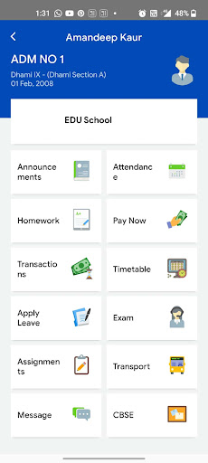 EDU - All-in-One Campus Management Solution EDU is a comprehensive, AI-powered platform designed to simplify and streamline campus management for educational institutions. Whether you\re an administrator, teacher, student, or parent, EDU centralizes key operations like admissions, attendance, grades, fees, and more into a unified system. With real-time notifications, personalized dashboards, and AI-driven insights, EDU enhances communication, automates processes, and empowers data-driven decision-making. Teachers can track student performance, students can access study materials and grades, and parents stay updated on academic progress and school events. Secure, scalable, and easy to use, EDU ensures data protection with robust encryption and seamless integrations. Access everything on-the-go with the mobile app, available on both Android and iOS. Download EDU today to optimize campus operations and foster a smarter, more connected learning environment.