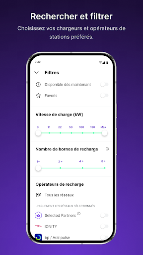 Rechargez en toute simplicité. Profitez de l’un des plus grands réseaux de recharge publics en Europe. Et si vous disposez d’un Elli Charger ou d’un Elli Charger 2 à domicile, vous pouvez facilement gérer et optimiser la recharge intelligente. Le tout depuis une seule application. Elli Charging vise à autonomiser et à simplifier votre mobilité électrique. Utilisez l’application Elli Charging pour trouver des stations de recharge à travers toute l’Europe et gérer la recharge à domicile. Il vous suffit de vous enregistrer auprès d’Elli et de choisir un tarif de recharge adapté à vos besoins. Vous pouvez ensuite utiliser votre carte ou l’application Elli Charging pour recharger (presque) partout et en toute simplicité. Voici les avantages d’Elli : ▸ Plus grand réseau de recharge d’Europe Vous avez accès à plus de 900 000 stations de recharge de notre réseau de partenaires dans toute l’Europe (y compris la recharge rapide avec IONITY). Nous ajoutons continuellement de nouveaux partenaires et stations. ▸ Rechargez comme vous le souhaitez Rechargez avec l’application, votre carte Elli Charging ou Plug & Charge. ▸ Tarification simplifiée Faites votre choix parmi trois tarifs selon vos besoins en recharge. Vous bénéficiez d’un prix abordable, transparent et fixe, quel que soit le partenaire de recharge que vous utilisez. ▸ Recherchez, filtrez et naviguez entre les stations en toute simplicité Filtrez votre recherche de station par disponibilité, vitesse de recharge et type de prise. Accédez ensuite simplement au chargeur de votre choix. ▸ Planifiez la recharge sur votre itinéraire Identifiez le meilleur arrêt sur votre itinéraire pour recharger votre véhicule avec le planificateur de voyage de VE. ▸ Effectuez l’intégration à votre véhicule Intégrez Android Auto pour rechercher et filtrer des stations de recharge, lancer une recharge à distance et obtenir de l’aide. ▸ Gérez votre chargeur à distance Accédez facilement à votre chargeur domestique et gérez-le de n’importe où, directement dans l’application. ▸ Affichez rapidement les informations de recharge du chargeur grâce aux widgets Surveillez la progression de votre recharge directement depuis votre écran d’accueil ! Le widget Elli Charging affiche rapidement le statut de votre chargeur ou les résultats de votre dernière session de recharge. Gardez le contrôle de votre recharge en toute simplicité, même en déplacement. ▸ Gardez une trace de votre historique de recharge Affichez les graphiques et les données de votre historique de recharge. Téléchargez des factures ou des enregistrements pour toutes vos sessions de recharge. Aidez-nous à nous améliorer en donnant votre avis ! Nous vous aiderons également à répondre à toute question que vous pourriez vous poser ou à tout problème que vous pourriez rencontrer via support@elli.eco. Pour obtenir de plus amples informations sur l’application Elli Charging, consultez le site : https://elli.eco/en/home