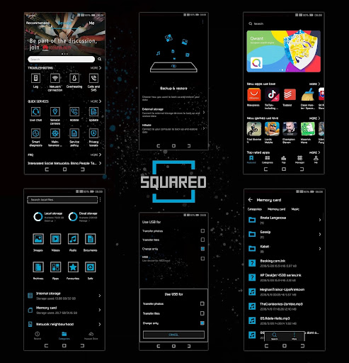Modern dark theme with an exclusive design, square elements and a blue accent. ***FEATURES*** Completely black. Modern design. Square graphic elements. Two versions of the theme. New square black and blue icon pack (more than 550 icons of most used apps). ***NOTE*** Restart your phone after installing the theme to take changes. Please report any bugs you have seen via email: hanni@outlook.sk or just leave the comment at Google Playstore. ***ATTENTION*** This theme is designed for Huawei/Honor devices running EMUI 5/8/9.0. Please check your EMUI version before install it in your device. Compatibility with different version of EMUI is not guaranteed! The theme does not work on devices with EMUI 9.1!!! The update to EMUI 9.1 is not possible to maintain compatibility with older versions of EMUI. Themes for EMUI 9.1 will be published separately. Download Squared for EMUI 9.1: https://play.google.com/store/apps/details?id=sk.hanni.emuithemes.squared2 Some graphics do not change on devices with EMUI 8.1/9.0 and devices with new firmware of EMUI 8.0/8.0.1 (status bar icons, navigation panel icons, setup icons, switches, etc.). This is not a problem with theme but restriction of Huawei! If you have white bars in Huawei Message, Huawei File Manager or other apps on EMUI 9.0 devices, go to Settings - Smart assistance - Accessibility and disable item Advanced visual effect. Reboot device to take effect! ***CREDITS*** Thank you to everyone who has support me, report bugs and help make my themes better. I am thankful! ***FOLLOW ME*** Facebook: https://www.facebook.com/hanni.themes Youtube: https://www.youtube.com/channel/UCQzYruuvwvjBiEFJ5b5vtdg