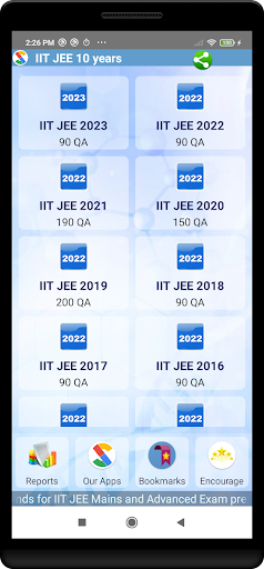 IIT JEE Mains and Advanced - Past 10 years papers The JEE (Joint Entrance Exams) or IIT-JEE exam is for students who wish to study graduate B.E/B.Tech courses in various technology at premier institutes in India. We have presented past 10 years papers of IIT JEE in this app in QUIZ format. An unique app of its kind from Sana Edutech helps you in understanding the past question paper sets since 2011 there by helping you in preparing for your IIT-JEE exams. Subjects covered include Physics, Chemistry, Mathematics. JEE Main and Advanced Questions shall be asked from Higher secondary CBSC syllabus. The past set question papers are presented in a quiz format for you to work out and evaluate yourself through this app. This app shall be a boom for all students preparing for JEE Mains and Advanced exams. App features include - Voice read out facility - Ability to share QA with your friends - Text, Image zoom facility - Time mode exams with preset time limit - Practice mode exams for you to try out - Any number of tests can be taken anytime It is very essential for you to go through, understand and revise the entire IIT-JEE contents given in this app once before you appear for IIT JEE exam. All the best for your exams. Disclaimer: Sana Edutech helps students preparing for all type of Competitive exams in India. We do not affiliate in any way with the IIT or Government agency conducting the respective exam.