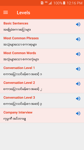 English Speaking for MM is a offline english learning application. Easy to learn english speaking, listening, reading daily without internet access. No need to download any audio files. This application is for all myanmar people who want to improve and learn english language with myanmar meaning. Another features - Grammar test quiz - Online english lessons and allow to save the lessons for offline use ** We will add more online lessons regularly ** If you want to contribute some lessons, just send email to us using \Contact Us\ option. Thanks you.