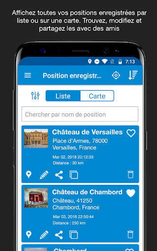 Enregistrer Position GPS - le nom de l’application veut tout dire! Ceci est votre assistant personnel de localisation. Enregistrez vos lieux favoris. N’oubliez jamais où vous avez garé votre voiture. Partagez des positions importantes avec vos amis ou collègues. ★ Fonctionnalités de Enregistrer Position GPS ★ ◇ Enregistrez & partagez une position Enregistrez votre position actuelle avec précision en un seul clic. ◇ Prise en charge en ligne/hors ligne L’application fonctionne avec et sans internet. Vous pouvez enregistrer une nouvelle position sans internet. (le GPS prendra du temps à localiser sans internet) ◇ Enregistrez les détails d’une position Enregistrez également des détails importants tels que Latitude, Longitude, Titre, Adresse et Photos pour marquer n’importe quelle position. ◇ Modifiez une position enregistrée Modifiez facilement vos positions enregistrées, ou supprimez les positions indésirables. ◇ Groupez vos positions Vous avez des restaurants ou des spots de randonnée favoris? Groupez-les ensemble pour y accéder plus tard. ◇ Différents types de carte Vous pouvez afficher les cartes en vues Carte routière, Satellite, Hybride et Terrain. ◇ Positions favorites Ajoutez des positions aux Favoris pour toujours vous souvenir de vos endroits préférés. Accédez-y rapidement depuis votre l’écran de votre choix. ◇ Naviguez vers vos positions Naviguez avec aisance et trouvez l’itinéraire le plus rapide vers toutes vos destinations avec Enregistrer Position App. ◇ Connectez-vous et synchronisez vos positions Connectez-vous et accédez à vos positions préférées sur n’importe quel appareil. ◇ Exportez et importez vos positions Exportez facilement toutes les données de localisation dans un fichier CSV afin de pouvoir utiliser ces données facilement. Vous souhaitez cartographier un groupe de positions à partager avec une équipe de collègues? C’est la fonction idéale pour vous. ◇ Demande d’assistance/feedback/fonctionnalités Nous adorons avoir de vos nouvelles! Contactez-nous par messagerie intégrée à propos de toute question ou feedback. Vous avez une idée de nouvelle fonctionnalité? Nous aimerions l’entendre et ferons de notre mieux pour vous servir. Voici des exemples de problèmes : ◇ Vous rendez visite à un nouvel ami pour la première fois? L’application Enregistrer Position affichera et enregistrera rapidement les détails de position avec précision afin que vous puissiez y accéder lors de votre prochaine visite! L’application conserve même les données afin que vous puissiez vous souvenir de la dernière fois que vous avez vu votre grand-mère! ◇ Vous avez trouvé le meilleur restaurant de la ville et souhaitez vous rappeler d’y emmener vos proches? Enregistrez la position dans l’application et partagez la même avec vos amis afin qu’ils sachent à vous trouver. ◇ Toutes les données de localisation peuvent être enregistrées dans l’application pour s’y référer depuis d’autres appareils, tout en sécurité afin de garantir que seuls vous et ceux que vous souhaitez puissiez voir les données de localisation et y accéder. Cette application est idéale pour les aventuriers, les hommes/femmes d’affaires, les chefs d’équipe et ceux qui socialisent avec leur famille et leurs amis. Imaginez simplement tous les endroits que vous avez visité en vous disant que vous auriez voulu les partager avec les autres. C’est votre chance. Enregistrer Position GPS est maintenant également disponible sur iOS: http://apple.co/2ADB0X8