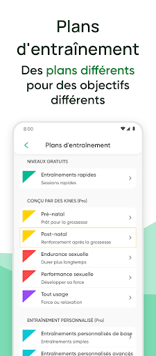 Sessions faciles et rappels quotidiens, voilà la solution pour renforcer vos muscles du plancher pelvien! Ennuyés de faire toujours la même routine d’exercices et vous vous voulez éviter la sensation de punition? Cette appli a 10 sessions différentes avec des charges progressives c\est-à-dire que vous serez toujours entrainés par une nouvelle routine. Rapide et facile – toutes les sessions durent entre 30 secondes et 3 minutes, l’idéal pour un style de vie occupé. Vous savez que vous devez faire les exercices de Kegel, mais vous les oubliez ? Rappels quotidiens pour vous rappeler de faire les exercices. La dernière discrétion: Choisissez entre les signaux visuels, audio ou sous forme de vibration pour vous guider dans l’exercice: suivez les commandes sur l’écran, les signaux audio ou utilisez les vibrations pour ne pas vous faire remarquer. Icone et nom discret pour que personne qui touche à votre téléphone ne comprenne à quoi sert cette application. La façons simple et efficace pour renforcer votre plancher pelvien. C’est gratuit, dépêchez-vous à la télécharger!