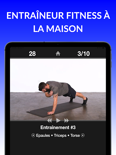 Entraînements Quotidiens est un programme d’entraînement quotidien d’une durée de 5 à 30 minutes, qui convient aux hommes comme aux femmes, avec les meilleurs exercices à faire confortablement chez vous. Ces exercices qui ont fait leurs preuves, sont dirigés par un entraîneur qualifié et ciblent les principaux muscles. Quelques minutes par jour suffisent à renforcer et tonifier votre corps. L’interface conviviale, complémentée par des vidéos et des alarmes, facilite le suivi et la compréhension de chaque exercice. Choisissez votre programme et suivez-le ! CARACTÉRISTIQUES : • 39 séances ciblées de 5 a 10 minutes différentes • Séances aléatoires de 10 à 30 minutes, pour travailler l’ensemble du corps • Plus de 390 exercices • À la différence de la plupart de nos concurrents, pas d’achat intégré ou d’abonnement ! • Séances de ballon, pilates, stretching, kettlebell et autres • Créez de multiples programmes personnalisés • Programmes aléatoires • Sans publicité • Nouvelles séances vidéos en streaming • Convient aux hommes et aux femmes • Vidéos expliquant chaque exercice • Conçu par un entraîneur personnel qualifié • Instructions à l’écran et alarmes • Pas de connexion à internet requise pour la plupart des séances (les vidéos en streaming nécessitent internet)