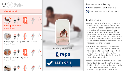 BodBot est votre propre entraîneur personnel numérique, proposant des séances d\entraînement IA personnalisées en fonction de vos objectifs/équipement/capacités physiques/difficulté souhaitée et bien plus encore. BodBot vous fournit des conseils étape par étape pour chaque exercice/progression et votre plan s\adapte au fil du temps. BodBot contient déjà l\application de fitness à domicile et au poids du corps la plus avancée du marché et nous travaillons d\arrache-pied pour ajouter de nouveaux outils pour aider nos utilisateurs pendant cette période. Où que vous soyez, avec ce que vous avez, nous vous proposerons un excellent programme d\entraînement. Vos objectifs, votre corps, votre plan. ■ Entraînez-vous n\importe où, n\importe quand - à la maison/salle de sport/garage/hôtel - avec n\importe quelle combinaison d\équipement ou simplement avec votre propre poids corporel. ■ Obtenez des résultats même avec un emploi du temps chargé : vos séances d\entraînement sont adaptées aux jours/temps dont vous disposez. ■ Développez vos muscles, gagnez en force, augmentez votre endurance, améliorez votre condition cardiovasculaire/perdez du poids : quel que soit votre point de départ/vos capacités actuelles, nous travaillerons avec vous pour vous amener là où vous allez. Entraînements et adaptation de l\IA - Atteignez vos objectifs grâce à une approche scientifique/entraînements qui apprennent/s\adaptent d\une série à l\autre/d\un entraînement à l\autre. - Adaptez-vous pour prospérer - votre style de vie n\est pas stagnant et nous adapterons votre planification en fonction de votre niveau d\activité/votre sommeil. - Réalisez des progrès soutenus grâce à une progression intelligente des séries, des répétitions/poids en salle de sport et une vaste gamme de progressions du poids corporel à la maison. Guide personnalisé étape par étape ■ Bougez/faites de l\exercice mieux grâce à des évaluations de condition physique personnalisées ciblant la mobilité/force/posture et plus encore. ■ Abandonnez la planification à l\emporte-pièce : BodBot élaborera votre plan d\entraînement en fonction de vous/l\adaptera en fonction de vos commentaires. Nous vous aiderons à rester sur la bonne voie/progresser. ■ Gagnez/maintenez/perdez du poids avec une routine d’entraînement adaptée. Vous vous entraînez, BodBot planifie - Maximisez vos gains de forme physique avec un plan d\entraînement qui adapte intelligemment l\intensité et le volume entre les séances, sans laisser de côté aucun muscle, mouvement ou articulation. - Tirez le meilleur parti de votre temps grâce à une intégration transparente de circuits et de supersets. - Niveau supérieur - pour les entraîneurs de force débutants, gagnez en confiance dans de nouveaux exercices de résistance et équipements de gym. Apprenez les mouvements corrects avec des vidéos de démonstration et des descriptions détaillées. Votre propre entraîneur personnel mobile Tout comme un bon entraîneur personnel personnalisera votre programme d\entraînement, BodBot crée un programme individuel pour vous et l\adapte à mesure que vous progressez. Amplitude de mouvement limitée au niveau des épaules ? Nous pouvons travailler pour corriger cela. Plus faible dans le dos que dans la poitrine ? Nous pouvons régler ce problème. Ischio-jambiers trop tendus ? Vous souhaitez développer les biceps ou les fessiers ? Vous ne pouvez vous entraîner que pendant quelques fenêtres au cours de la semaine ? BodBot peut tout gérer et vos séances d’entraînement refléteront tous ces besoins. Nous nous engageons à vous fournir le meilleur plan d\entraînement possible et les meilleurs entraînements. De plus, si vous manquez une séance d’entraînement ou si vous décidez de partir en randonnée sur un coup de tête, nous pouvons intégrer ces nouvelles informations et mettre à jour votre plan d’entraînement en conséquence. Le plan vit et respire avec vous et pour vous. Commençons.