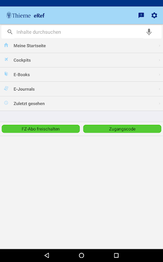 eRef App – die Offline-App zum Thieme Wissensportal für Ärzte Nutzen Sie das eRef Wissensportal für Ärzte jetzt auch unterwegs offline mit der eRef App. Die App ist kostenlos nutzbar für alle, die ‒ über einen aktiven eRef Testzugang verfügen ‒ eine persönliche Lizenz der eRef haben ‒ Zugang zu einer institutionellen Lizenz der eRef haben ‒ Abonnent einer Thieme Zeitschrift sind ‒ einen Zugangscode für ein Thieme Buch besitzen Funktionen im Überblick: ‒ Laden Sie Ihre E-Books und E-Journals bequem auf Ihr Smartphone und lesen Sie wann und wo sie wollen. ‒ Nutzen Sie die Cockpits, um Differenzialdiagnosen, Therapien und vieles mehr rund um ein medizinisches Thema zu recherchieren. ‒ Verwenden Sie Playlists um Ihre Favoriten zu organisieren Jetzt ausprobieren und einfach in der App einen kostenlosen Testzugang anlegen. Sie können folgende Fachzeitschriften in der eRef App freischalten: AINS - Anästhesiologie · Intensivmedizin · Notfallmedizin · Schmerztherapie Aktuelle Dermatologie Aktuelle Ernährungsmedizin Aktuelle Kardiologie Aktuelle Neurologie Aktuelle Rheumatologie Aktuelle Urologie Allgemein- und Viszeralchirurgie up2date Arquivos Brasileiros de Neurocirurgia: Brazilian Neurosurgery Augenheilkunde up2date Balint Journal Das Gesundheitswesen Der Klinikarzt Der Notarzt Der Nuklearmediziner Diabetes Aktuell Diabetologie und Stoffwechsel Dialyse Aktuell Die Rehabilitation Die Wirbelsäule DMW - Deutsche Medizinische Wochenschrift Drug Research Endo-Praxis Endoscopy Endoskopie heute Experimental and Clinical Endocrinology & Diabetes Flugmedizin · Tropenmedizin · Reisemedizin - FTR Fortschritte der Neurologie · Psychiatrie Frauenheilkunde up2date Gastroenterologie up2date Geburtshilfe und Frauenheilkunde Gefäßmedizin Scan - Zeitschrift für Angiologie, Gefäßchirurgie, diagnostische und interventionelle Radiologie Gesundheitsökonomie und Qualitätsmanagement Hand-/Mikro-/Plastische Chirurgie Handchirurgie Scan Hormone and Metabolic Research Im OP Informationen aus Orthodontie und Kieferorthopädie Innere Medizin up2date intensiv Intensivmedizin up2date International Journal of Sports Medicine Interventionelle Radiologie Scan Journal Club AINS Journal Club Schmerzmedizin Kardiologie up2date Klinische Monatsblätter für Augenheilkunde Klinische Neurophysiologie Klinische Pädiatrie Krankenhaushygiene up2date Laryngo-Rhino-Otologie Lege artis – Das Magazin zur ärztlichen Weiterbildung Neonatologie Scan Neurochirurgie Scan Neuroradiologie Scan Notfallmedizin up2date OP-Journal Orthopädie und Unfallchirurgie up2date Pädiatrie up2date Pharmacopsychiatry Physikalische Medizin Pneumologie PPmP Psychotherapie, Psychosomatik PSYCH up2date Psychiatrische Praxis Psychotherapie im Dialog Radiologie up2date Radiopraxis retten! RöFo Senologie Sportverletzung Sportschaden Sprache · Stimme · Gehör Suchttherapie Transfusionsmedizin TumorDiagnostik & Therapie Ultraschall in der Medizin - European Journal of Ultrasound Urologie Scan Zahnmedizin up2date Zeitschrift für Gastroenterologie Zeitschrift für Orthopädie und Unfallchirurgie Zeitschrift für Palliativmedizin Zeitschrift für Sexualforschung Zentralblatt für Chirurgie ZGN - Zeitschrift für Geburtshilfe und Neonatologie ZWR Zahnärzteblatt