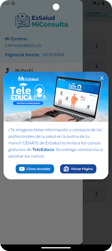 Aplicación que EsSalud pone a disposición de sus Asegurados, a fin de consultar las Citas Programadas, Recetas Emitidas, Atenciones Pasadas, Solicitudes de Cita que aún no han sido atendidas y el Seguimiento del Trámite de Referencias.