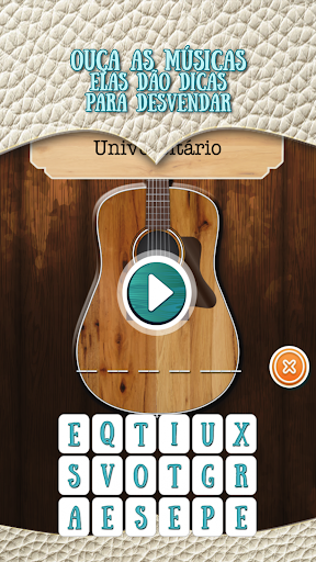 Musica Quiz, o \Eu Sei o Sertanejo\ desafia você a descobrir qual é a música sertaneja. Escute as músicas: todas dão dicas que inspiram cada resposta. Teste seus conhecimentos sobre suas músicas favoritas como \Gatinha Assanhada\, \Dormi na Praça\ ou \Menino da Porteira\ Baixe este jogo GRATUITO agora mesmo. Aqui têm sertanejos de todos os tipos, como: . Sertanejo Universitário . Sertanejo Caipira . Sertanejo Contemporâneo . Sertanejo Romântico Você encontrará desafios baseados em grandes artistas como Gusttavo Lima, Zezé di Camargo e Luciano, Bruno e Marrone, César Menotti e Fabiano e outros... Não perca a chance de conhecer mais sobre os gênero musical mais popular do Brasil. Ah, vamos ver se você sabe mesmo sobre Jorge e Mateus, Luan Santana, Cristiano Araújo, Fernando e Sorocaba, entre vários outros. Lembre-se: Este jogo é difícil! Só zera esse jogo quem for muito cabeça =D