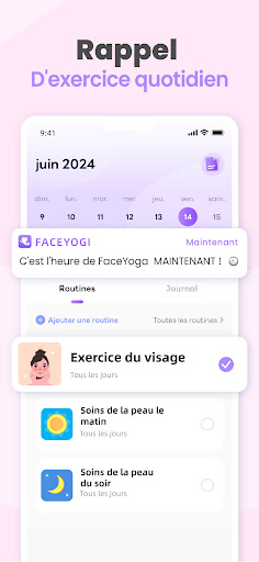 C\est parti pour un boost du visage naturel et frais avec FaceYogi ! Un programme de 7 jours exclusif basé sur votre analyseur de peau, FaceYogi est une appli d\embellisement de la peau avec exercices faciaux conçue pour vous donner un visage parfait via des cours de yoga du visage sur mesure. Système d\incitation pour vous aider à persévérer Seulement 8 mins par jour Effets visibles en peu de temps Fonctionnalités: - L\Analyseur de Peau de FaceYogi vous propose des exercices faciaux détaillés et personnalisés. Nous utilisons l\appareil photo avant pour scanner votre visage. Notre technologie intelligente peut détecter les traits de votre visage et vos problèmes de peau, et vous proposer un programme de fitness du visage de 7 jours pour un look naturellement lifté, tonifié, sain et frais. - Le Journal du Visage de FaceYogi vous motive à suivre vos problèmes de peau après l\entraînement. En suivant nos cours de yoga du visage, votre peau s\améliorera un peu plus chaque jour. Il faut dont suivre l\aspect de votre visage au quotidien, pour constater les changements impressionnants en peu de temps. - Le système d\incitation de FaceYogi vous encourage à continuer l\entraînement tous les jours et vous offre un sentiment de satisfaction grâce au suivi visuel du progrès. Nos cours de yoga du visage sont conçus scientifiquement, et se concentrent sur divers objectifs: - Réduction du double menton - Étirez votre cou et votre menton, stimulez la circulation sanguine et tonifiez les muscles - Anti-vieillissement - essayez de réduire les lignes et rides de votre visage, comme les lignes de rire, et remplacez-les par une version plus jeune et plus fraîche de votre visage - Fermeté de la peau - boostez l\élasticité du visage et rafraîchissez votre peau - Spa du Visage - concentrez-vous sur la relaxation des muscles du visage Les exercices faciaux sont-ils vraiment efficaces ? - Oui ! Il vous suffit d\ajouter 8 minutes à votre routine matinale pour un visage éclatant en 7 jours ! En quoi consistent les exercices faciaux ? - À augmenter la circulation sanguine, à réveiller les muscles moins utilisés - À permettre à plus d\oxygène et de nutriments d\atteindre les cellules de la peau et à détoxifier la peau - À libérer de la tension et du stress dans les muscles - À stimuler la production de collagène - À améliorer le renouvellement des cellules Confidentialité: https://s.bongmi.cn/faceyoga/privacy.html Conditions générales: https://s.bongmi.cn/faceyoga/service.html