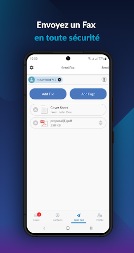 Avec Fax.Plus, envoyez et recevez des fax facilement et rapidement sur votre smartphone ! Abandonnez votre télécopieur et accédez à vos fax sur votre ordinateur, smartphone ou tablette. Téléchargez notre application gratuite ou allez sur notre site internet www.fax.plus pour commencer à envoyer et recevoir des fax. Fax.Plus offre une souscription gratuite qui vous permet d\envoyer jusqu\à 10 pages de fax! Entrepreneur, Professionnel ou Entreprise ? Consultez notre gamme de forfaits et trouvez celui qui vous correspond ! Notre gamme débute à $4.99/mois et vous permet d\obtenir un numéro de fax local parmi 40 pays, à partir duquel vous pouvez envoyer et recevoir des fax dans près de 150 pays. www.fax.plus/pricing Fonctionnalités : • Envoyez et recevez des fax 24h/24, 7jours/7 où que vous soyez • Email à faxer • API de fax • Scannez vos documents à l\aide de votre appareil photo (détection automatique du document, rognage des bordures, correction de la perspective) • Importez vos documents à partir de votre appareil ou à partir du cloud (Google Drive et Dropbox, formats supportés : Documents Office, PDF, JPG, PNG, TIFF) • Ajouter du texte directement à partir de l’application • Signez vos documents et transférer les, sans même avoir besoin de les imprimer ! • Transférez, répondez ou ré-envoyez vos fax à n\importe quel télécopieur • Envoyez des fax aux contacts de votre répertoire téléphonique • Organisez l\historique de vos fax en ajoutant des notes à vos fax reçus et envoyés • Planifiez l\envoi de vos fax à une date et heure spécifique • Activez l\option \Réessayer\ dans les préférences pour ré-envoyer automatiquement tout fax dont la transmission aurait échoué selon les critères que vous aurez définis • Activez la diffusion d’un audio message à un Téléfax : votre destinataire entendra \This is a fax call, to receive please press start.\ Foire Aux Questions : • Je n\ai besoin de faxer que quelques pages par mois, dois-je payer quelque chose ? Non. Suite à votre inscription, vous bénéficiez d\une souscription gratuite qui vous offre un envoi de fax jusqu\à 10 pages*. * En fonction de la destination souhaitée, l\envoi d\une page peut être soumis à un coefficient multiplicateur. Plus d\informations sur les tarifs liés à votre destination sur notre site internet : www.fax.plus/pricing • Je veux recevoir des fax, mais je n\ai pas de numéro de fax. Est-ce que Fax.Plus peut me correspondre ? Oui ! Pour recevoir des fax, vous devez souscrire à un forfait Basique ou Premium, dont les tarifs commencent à $6.99/mois. • Est-ce que Fax.Plus fonctionne dans tous les pays ? Oui, quel que soit le pays dans lequel vous vous trouvez, vous pouvez envoyez des fax localement et internationalement auprès de plus de 150 pays ! Si vous souhaitez recevoir des fax, vous pouvez obtenir un numéro des États-Unis, du Canada, de l\Afrique du Sud, de l\Italie, de l\Allemagne, de la France et de nombreux autres pays. Rendez-vous sur notre site pour consulter la liste de tous les pays supportés. • Que puis-je faire si Fax.Plus ne supporte pas un pays que je souhaite ? Nous travaillons continuellement pour faire évoluer notre service et ajouter de nouveaux pays. Si le pays ne votre choix ne figure pas dans notre liste de pays supportés, envoyez une demande à notre service clients (support@fax.plus) et nous vous tiendrons informés dès lors que ce pays sera supporté. Conformité HIPAA*: activez les contrôles de sécurité avancés et commencez à télécopier en ligne en toute simplicité tout en restant entièrement conforme à HIPAA. * Fax.Plus est conforme à la HIPAA, à condition que l\utilisateur ait activé les contrôles de sécurité avancés et qu\il conclue un accord de partenariat commercial (BAA) avec Fax.Plus. Des contrôles de sécurité avancés sont disponibles au niveau du plan Entreprise. D\autres questions ? N\hésitez pas à nous contacter via notre site web, application ou par mail (support@fax.plus). Notre service clients est à votre disposition !
