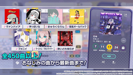 「ヴァンパイア」「KING」「ロキ」「シャルル」「Tell Your World」など 最新の人気曲からみんなが知ってる名曲まで、3DMV付きで多数収録! SEGA×Colorful Paletteが贈る、誰でもかんたんに楽しめるリズムゲーム。 ■■最新の人気曲からみんなが知ってる名曲まで、多数収録■■ フォニイ(作詞:ツミキ 作曲:ツミキ) 千本桜(作詞:黒うさ 作曲:黒うさ) ドラマツルギー(作詞:Eve 作曲:Eve) Tell Your World(作詞:kz(livetune) 作曲:kz(livetune)) KING(作詞:Kanaria 作曲:Kanaria) 命に嫌われている(作詞:カンザキイオリ 作曲:カンザキイオリ) ヴァンパイア(作詞:DECO*27 作曲:DECO*27) シャルル(作詞:バルーン 作曲:バルーン) ロキ(作詞:みきとP 作曲:みきとP) アスノヨゾラ哨戒班(作詞:Orangestar 作曲:Orangestar) マトリョシカ(作詞:ハチ 作曲:ハチ) 夜に駆ける(作詞:Ayase 作曲:Ayase) ローリンガール(作詞:wowaka 作曲:wowaka) ワールドイズマイン(作詞:ryo 作曲:ryo) グッバイ宣言(作詞:Chinozo 作曲:Chinozo) 他 ■■初音ミクたちバーチャル・シンガーも登場■■ 初音ミク、鏡音リン、鏡音レン、巡音ルカ、MEIKO、KAITOの6人と一緒に、 個性豊かな20人のキャラクターが登場! 現実世界と\\セカイ\\の2つの舞台で展開されるストーリーを楽しもう! ■■『バーチャルライブ』■■ 全国のプレイヤーたちと一緒に、リアルタイムにライブを楽しめる! お気に入りのアバター衣装やペンライトでライブを盛り上げよう! ++++++++++++++++++++++++++++++++ 【公式X】 @pj_sekai 【公式サイト】 https://pjsekai.sega.jp/ 【推奨端末】 Android8.0以降、Snapdragon 845 相当以上、メモリー(RAM)4GB 以上 【対応言語】 本アプリの言語は日本語のみに対応しております。その他の言語は選択できませんので、ご注意ください。 ++++++++++++++++++++++++++++++++ このアプリケーションには、株式会社Live2Dの「Live2D」が使用されています。