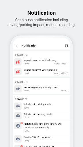 Support Android Version 10.0 or above. FineVu CLOUD & Wi-Fi app supports Live View, recorded video playback, event summary, dash cam settings, and updates by connecting the dash cam to your smartphone over the Cloud and Wi-Fi. [Features shared between Wi-Fi and Cloud] - Dash cam connection: Activate Wi-Fi by tapping the Wi-Fi button on the dash cam, and connect to your smartphone. - Dash cam Setting: Set and control your dash cam with the app. - Storage: Set aside videos downloaded from the dash cam. The stored videos can be played, regardless of the connection with the app. [Cloud Features] - Live View: Connect the dash cam to the Cloud, and play the Live video in real time with the app. - Cloud File: Play videos automatically uploaded to the Cloud when driving events, parking events, or manual recordings occur. - Driving Score: Analyze your driving style by the last and monthly driving scores we provide. - Push Notification: Get a push notification in real time, including switching to driving/parking mode, and detecting impacts. - Update: Update the dash cam firmware and speed camera data over the Cloud. - Cloud Setting: Check the Cloud connection status, Cloud plan, and usage report in real time. [Wi-Fi Features] - Dash cam File: Play and download videos recorded in the driving and parking mode. - Event Summary: Check whether the dash cam is turned off, high temperature or low voltage is blocked, as well as driving records, and history of impacts while parking. - Update: Update the dash cam’s latest firmware and speed camera data (once a month) over the Wi-Fi. [Applied Model] Korea :: X3500 POWER / LXQ600 POWER / X3300 NEW / LXQ3300 POWER / X7700 POWER / SF5000 / X550 CLOUD / LXQ3300 CLOUD / X7700 CLOUD / LXQ3300 3CH Global :: GX1000 CLOUD / GX35 CLOUD [Caution] ※ If you connect to Bluetooth or Wi-Fi via the smartphone’s system settings, an operation may be restricted. Try connecting only with the app. ※ If you do not use the app for a long time, the permission you have accepted may be automatically denied. ※ Some smartphones may not work depending on the device specifications, such as OS version, and supported resolution. ※ If you switch to parking mode while the dash cam is connecting to Wi-Fi, your smartphone may be disconnected. ※ If the ‘Switch to mobile data’ function is on in the Wi-Fi advanced settings, the connection between the dash cam and Wi-Fi may be restricted. Please turn off the function. ※ If you connect to the Cloud via \Mobile Hotspot\ while the ‘Power Saving mode’ function is on, the connection between the dash cam and Cloud may be restricted. Please turn off the function. ※ If you use the VPN, it may cause Wi-Fi connection issues. Please pause the VPN, and use the app. ---------------------------------------------------------------------------------------------------------------------- [Access Permission] - Location: Dash cam Wi-Fi search and connection - Photo, Video: Driving/Parking recording videos, Screenshots, Driving records save - Bluetooth: Dash cam model search - Camera: User’s profile photoshoot [Developer Contact] 8th Floor, Fine Venture Bldg., 41, Seongnam-dearo 925beon-gil, Bundang-gu, Seongnam-si, Gyeonggi-do, 463-828 KOREA (+82 31 788 8800) A/S contact: 1588-4458 ---------------------------------------------------------------------------------------------------------------------- Please email us For the app troubleshooting. (finevu-cs@finedigital.com)