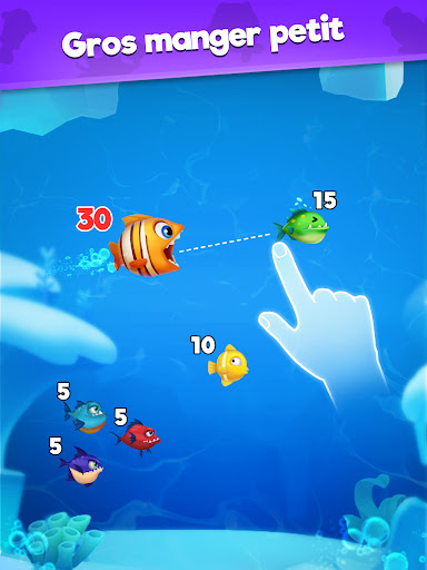 Ce jeu de combat en temps réel super addictif vous permet de rassembler les meilleurs bancs de poissons en haute mer afin de dévorer vos adversaires! Développez votre formation, échappez aux requins, survivez jusqu\au bout et devenez le grand vainqueur! Caractéristiques du jeu: ◆ Compétition multijoueur Alors que plusieurs joueurs se défient sur le même écran, le gameplay reste simple. Collectez le plus de poissons possibles et ressentez le frisson de devenir le dernier survivant! ◆ Contrôles fluides Utilisez le terrain et les objets à votre avantage pour afficher vos talents et terrassez vos adversaires. ◆ Poissons merveilleux et inconnus Faites glisser pour fusionner des petits poissons et débloquer des espèces de poissons mystérieux.
