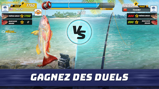 Vous voulez attraper des poissons, mais vous ne pouvez pas aller pêcher ? Les jeux de pêche simplistes ne vous conviennent pas ? Jouez à Fishing Clash, un jeu de pêche en multijoueur gratuit adopté par des millions de joueurs, et repartez à la pêche ! Fishing Clash combine le meilleur des jeux de pêche en multijoueur : le réalisme des simulations, la compétition des jeux de sport et l’aspect social des applications de pêche et de chasse. Avec ses plans de pêche dans le monde entier, c’est la simulation la plus réaliste parmi les jeux de pêche en multijoueur. Comment attraper rapidement un poisson dans Fishing Clash ? • Lancez le jeu. • Touchez le bouton « Lancer » dans le coin inférieur droit. • Touchez le bouton « Tirer » de manière répétée pour maintenir l’indicateur de tension de la ligne au centre de la barre du haut. • Admirez le beau poisson accroché à votre hameçon ! Et après ? • Détendez-vous, continuez à pêcher ou remportez des matchs dans le mode duel. • Participez aux défis et championnats en multijoueur. • Améliorez vos cartes d’appât pour passer aux niveaux supérieurs et débloquer de nouveaux plans de pêche. • Partez à la conquête du monde de la pêche ! Pêchez dans le monde entier Dans cette simulation de pêche, vous trouverez des plans de pêche partout : de la côte de la Floride et la rivière Kenaï au lac Biwa, aux Galapagos et au loch Ness. Il y en a presque partout ! Attrapez des bars, des carpes, des truites et même des poissons monstrueux des abysses ! Collectionnez et améliorez les cartes d’appât En gagnant des duels ou en vous plaçant sur le podium des championnats, vous obtiendrez des paquets de cartes d’appât. Collectionnez-les et améliorez-les pour attraper des poissons toujours plus gros ! Plus ils le seront, plus vous aurez de chances de gagner vos matchs et les tournois de pêche mondiaux ! Une simulation avec des duels en temps réel Affrontez d’autres pêcheurs lors de duels haletants. Vous devrez faire preuve d’habileté, mais aussi d’intelligence ! Devenez un maître de la pêche, menez votre hameçon vers les meilleures prises et remportez toutes les batailles de pêche. Participez à des événements Gagnez des récompenses (nouvelles cannes, cartes d’appât et jetons de compétences) lors d’événements quotidiens ou hebdomadaires. Remportez l’épreuve de pêche, affrontez des requins féroces, spécialisez-vous dans la pêche au siluriforme ou parcourez les plans de pêche en touriste pour y attraper les plus gros poissons ! Rejoignez ou créez un clan Fishing Clash est une véritable simulation dotée d’une composante sociale comme les applications de pêche gratuites. Rencontrez d’autres pêcheurs, discutez, échangez-vous (ou offrez !) des cartes d’appât et associez-vous pour obtenir des récompenses dans les Guerres des clans. De meilleures prises avec de meilleures compétences Tous les plans de pêche disposent d’un arbre de compétences. Débloquez de nouvelles compétences avec vos jetons, obtenez des bonus pour certains poissons, certaines raretés et bien plus encore ! Des plans de pêche époustouflants Que vous préfériez la pêche à la mouche, sur glace ou à la cuillère, les panoramas vous feront voyager. Tous les plans de pêche de Fishing Clash offrent de magnifiques paysages en 3D et des poissons uniques qui vous raviront les pupilles. C’est une simulation réaliste, après tout. Du contenu tout frais chaque semaine ! Des poissons, des plans de pêche et des cannes ; cette simulation réaliste s’enrichira de nouveau contenu toutes les semaines. Vous ne manquerez jamais de poissons ! Mettez un peu de pêche dans votre vie ! Que vous soyez un pêcheur aguerri ou un amateur de simulations en multijoueur, Fishing Clash est un excellent passe-temps. Avec des dizaines de plans de pêche dans le monde entier et des centaines d’espèces, il offrira à quiconque cherche une simulation de pêche réaliste une expérience de qualité.