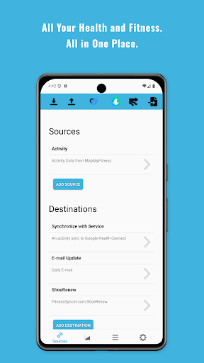 Unify your health and fitness clouds for a comprehensive view of your health and wellness. Whether you\re just beginning your health and fitness journey or are a professional athlete, FitnessSyncer has the features you need to gain valuable insight into your data and stay motivated. Choose the best apps and activity-tracking wearables for each activity, and FitnessSyncer unifies the data into a consolidated view. No more juggling multiple apps and websites to see your data. Visualizing the total picture is key to maintaining a healthy lifestyle and making positive choices for optimal wellness. CONNECT YOUR APPS * Automatically synchronize your health and fitness activity from more than 50 apps and activity-tracking wearables, including Fitbit, Garmin Connect, Google Fit, MapMyFitness, Samsung Health, Smashrun, Strava, Suunto, TrainingPeaks, Withings, and more. * Unify your steps, distance, duration, calories burned, weight, blood pressure, glucose levels, nutrition, oxygen, sleep, temperature, and more in one Dashboard. VISUALIZE YOUR DATA * Use the Dashboard built into the app to analyze your health and fitness. Track your progress by reviewing past workouts. * Use the Stream built into the app to review individual activities and data and, for rich data items, analyze them in-depth, including the map, charts, and splits. EMPOWER YOUR DATA * Synchronize: Seamlessly move your health and fitness data between apps, trackers, and devices. * FitnessSyncer ShoeRenew: Monitor the miles ran in your shoes, so you know when to replace them, or set equipment maintenance schedules, such as bike tune-ups, etc. * Alerts: Get alerts for the data that matters most to you, such as reaching milestones or regressing goals. * Email or Social Progress Reports: Share your progress with family and friends via email and Twitter. SAMSUNG HEALTH INTEGRATION * Read your Samsung Health data or supplement your Samsung Health from other data sources that FitnessSyncer supports. * Standard Syncing is enabled by default. To disable Standard-Sync, go to Samsung Health in our Settings. FitnessSyncer is free to use for up to 5 sources or destinations tasks. Get unlimited sources and destinations, more data on your Dashboard, and more with FitnessSyncer Pro. FitnessSyncer is designed for general fitness and wellness purposes and is not intended for medical use. Our full terms and conditions are available at https://www.fitnesssyncer.com/about/terms.html and our privacy policy at https://www.fitnesssyncer.com/about/privacy-policy.html .