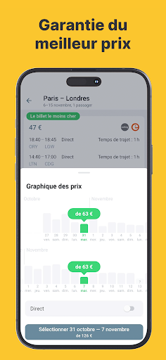 Présentation du \FlightsGuru\ app, votre compagnon ultime pour obtenir des billets d\avion à petit prix. Que vous vous lanciez dans une expédition d\affaires, planifiiez une escapade à la plage ou rendiez visite à des amis à l\étranger, FlightsGuru simplifie la recherche d\offres de vols optimales. Naviguer dans le labyrinthe sans cesse croissant de compagnies aériennes et d’options de vol peut s’avérer un formidable défi. Cependant, « FlightsGuru » est votre passeport pour une recherche de billets d\avion plus facile que jamais. Notre application exploite un formidable algorithme qui parcourt des milliers d\offres de diverses compagnies aériennes, aboutissant à une sélection organisée des choix les plus rentables et les plus attrayants. Personnaliser votre recherche est un jeu d\enfant. Entrez simplement vos dates de voyage préférées, votre point de départ et votre destination, et FlightsGuru présentera une liste bien organisée de vols disponibles, classés par prix, vous permettant de sélectionner les options les plus économiques. De plus, notre application vous offre la possibilité de comparer les prix de plusieurs compagnies aériennes, garantissant ainsi un processus décisionnel éclairé. Mais ce n\est pas tout ! \FlightsGuru\ offre également la commodité du suivi des prix. Si vous avez jeté votre dévolu sur un vol en particulier mais que le coût reste un peu trop élevé, ajoutez-le simplement à votre liste de suivi. Nous surveillerons de près les fluctuations de prix et, une fois que le vol que vous avez choisi deviendra plus abordable, vous recevrez une notification instantanée ! L\interface utilisateur de FlightsGuru présente une conception conviviale. Toutes les fonctionnalités dont vous avez besoin sont accessibles directement depuis l\écran d\accueil, vous permettant de commencer votre quête de vols économiques en quelques clics. Le voyage de la découverte à la réservation n’a jamais été aussi pratique. Nous reconnaissons que la sûreté et la sécurité sont primordiales dans le domaine du transport aérien. Par conséquent, FlightsGuru collabore exclusivement avec des compagnies aériennes réputées, garantissant que vous voyagez en toute confiance. Alors, pourquoi passer un temps précieux à parcourir des sources disparates pour trouver des billets d’avion économiques ? Téléchargez « FlightsGuru » maintenant et embarquez pour votre prochaine aventure avec les offres de vols les plus attractives. Merci à \FlightsGuru\, un billet d\avion abordable devient une réalité, ce qui en fait votre compagnon indéfectible dans le monde du transport aérien !