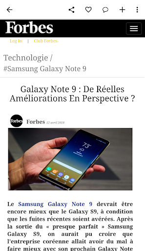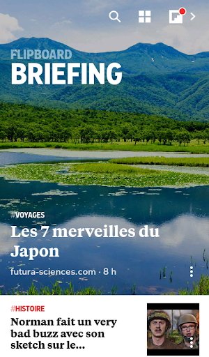 Flipboard Briefing pour Samsung met ce qui est important à portée de vos doigts. Faites glisser l\écran vers la gauche pour consulter rapidement les dernières infos et voir les reportages. Sélectionnez l\ensemble de vos sujets favoris pour accéder à une couverture complète de l\actualité à partir des sources les plus fiables. Flipboard Briefing propose un condensé d\information personnalisé dans une interface agréable à consulter. Engagez-vous sur vos passions et restez informé sans avoir le sentiment de perdre votre temps. Concentrez-vous sur ce qui vous intéresse vraiment plutôt qu\à un flux continu de posts sur la vie des autres. Vous pouvez désactiver Briefing. Faites un zoom arrière sur l\écran d\accueil puis faites glisser pour trouver Briefing. Désactivez Briefing et revenez à l\écran d\accueil. Pour toute question ou besoin d\aide, contactez nous sur support@flipboard.com.