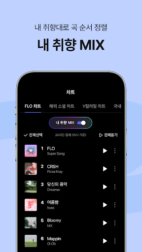 · 내가 원하는 무드로 가볍게 골라듣는 플레이리스트, \Moood:\ · 국내 최다 음원 서비스, \8,000만 음원\ · 원곡 가수가 아닌 다른 가창자의 색깔을 만나는 \커버곡 홈\ · 나만을 위한 플레이리스트 \홈 화면 추천\ · 장르, 상황에 맞는 3D 음향효과 \이퀄라이저\ · 내 취향이 아니라면 \아티스트 안 듣기\ · 쉽고 빠르게 음악 감상! \워치(Wear OS)지원\ · 이 모든 것이 FLO 첫 구매라면 100원에! · SKT 고객이라면 최대 6개월 간 30% 할인 [접근권한 고지] 필수 접근권한 - 저장공간: 고객님의 데이터 소모량 최소화를 위한 앨범아트 등 컨텐츠 저장, 캡쳐 이미지로 내리스트 만들기를 위한 갤러리 접근을 위해 필요합니다. 선택 접근권한 - 마이크: 음성인식, 음악검색 서비스를 제공하기 위해 마이크 권한이 필요합니다. ※ 선택 접근 권한은 동의하지 않으셔도 서비스 이용이 가능하지만, 동의하지 않으실 경우 특정 기능 사용은 제한될 수 있습니다. ※ 본 앱은 안드로이드 7.0 버전 이상에서 최적화 되도록 개발되었습니다. 이에 안드로이드 7.0 버전 미만을 사용중이신 고객께서는 \접근권한이 설정된 정보와 기능에 최초 접근할 때 동의할 수 있는 환경\이 운영체제의 차이로 인해 충분히 구현되지 않을 수 있음을 알려드립니다. ※ 서비스 관련 의견 및 문의사항은 앱 내 1:1 문의하기 또는 고객센터(1599-6034, flo@music-flo.com) 로 문의해 주세요. ---- 개발자 연락처 : 서울 서초구 강남대로 311 15층 드림어스컴퍼니 (우)06628 / 1599-6034 / 214-86-29288 / 제 2008-서울서초-1039호 / 서울시 서초구청 ---- 개발자 연락처 : (주)드림어스컴퍼니 서초구 강남대로 311 (서초동,한화생명보험빌딩) 서초구, 서울특별시 06628 South Korea 214-86-29288 2008-서울서초-1039 서울서초