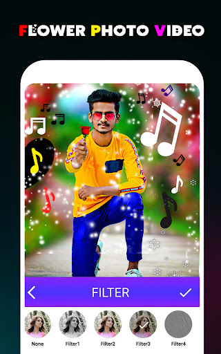 Flower photo video maker songs app is a powerful for creating short videos with your pictures music or favorite song. Easy steps to use the flower photo video maker songs app: 1. Add your favorite pictures. 2. Rearrange the pictures. 3. Import your own favorite song. 4.Add the frame to video. 5.Add the customized stickers and texts to video. 6.There are many video processing tools like fast, slow, reverse. 7 Save the video to your mobile storage. 8. Share the video with your dear and family members. Features of flower photo video maker songs app: Create photo video from pictures. Add filters. Add transitions. Trim and edit the song with ease. Add customized gifs. Save video and share video story with your near and dear via social networks.