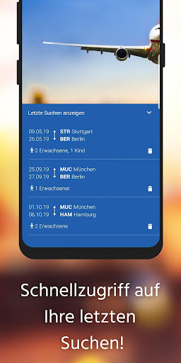 JETZT DOWNLOADEN, Flüge schnell vergleichen & sicher buchen! Die Highlights der fluege.de App in Kürze: ★ Schnelle und einfache Flugsuche mit konkretem oder flexiblem Reisezeitraum ★ Ihre letzten Suchen – direkt und übersichtlich auf der Startseite ★ Nutzerfreundliche Filter für eine schnelle Flugauswahl ★ Preisvergleich von Fluegen hunderter Airlines weltweit ★ Exklusive Angebote direkt in der App buchen ★ Übersichtliche, klar strukturierte Buchungsfunktion ★ Login: Daten sicher abspeichern und schneller buchen ★ Preistransparenz: exakte Aufschlüsselung der Kosten ★ Umbuchungs- und Reiseschutz - für Ihre persönliche Absicherung ★ Service Paket mit praktischen Vorteilen ★ Hinweise zu den erlaubten Gepäckstücken je Flug ★ Übersichtliche Darstellung aller durchführbaren Zahlungsmittel ★ GPS-Suche nach dem nächsten Flughafen Flüge buchen - so einfach geht’s mit der App von fluege.de: Geben Sie einfach Ihren gewünschten Abflug- und Zielflughafen ein und wir präsentieren Ihnen alle verfügbaren Linien- und Billigflüge (LowCost-Flüge) zahlreicher Airlines weltweit! Die praktischen Filter nach Flugpreis, Flugdauer, Abflugzeit, Zwischenstopps, Airlines, favorisierten Zahlungsmitteln oder den gewünschten Gepäckstücken unterstützen Sie bei der Auswahl. So können Sie unkompliziert Ihre passenden Flüge finden und vergleichen. Nach der Auswahl des gewünschten Flugs werden Ihnen alle wichtigen Details (z.B. Preise, Flughäfen, Flugplan, Flugdauer, Datum etc.) übersichtlich angezeigt. Nun können Sie problemlos Ihren günstigen Flug direkt über Ihr Smartphone buchen. Probieren Sie die Fluege.de App doch einfach einmal aus! Jetzt GRATIS downloaden & billige Flüge für ihre Reise finden! Fragen, Lob, Kritik oder Anregungen zu fluege.de? Sollte es noch Fragen oder Schwierigkeiten geben: unser Service ist unter der Hotline +49 (0)341 / 355 758 55 30 für Sie da! Wir sind stets daran interessiert, unsere App zu verbessern! Unterstützen Sie uns doch dabei und senden Sie uns gern Ihr Feedback an app-bewertung@fluege.de ! Ob Lob, Kritik oder Verbesserungsvorschläge - wir haben ein offenes Ohr! Sie sind Fan der App? Wir freuen uns riesig über Ihre Bewertung im Google Play Store! Schauen Sie doch auch hier einmal vorbei: >> Facebook-Fanpage: https://www.facebook.com/fluegede/ >> Instagram-Profil: https://www.instagram.com/fluege.de_offiziell/ >> Reise-Blog: https://www.fluege.de/travel-insights/