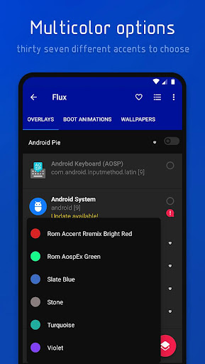 Flux is compatible with Substratum engine only! If you are not familiar with it, please do not download Enjoy pixel perfect visuals and material ui to give your phone a new vibrant and dark look! ️ Works with • Android 7/8/9/10/11/12/13 stock and custom roms • Oxygenos 9/10/11 • Samsung 8/9/10/11 Themed apps https://goo.gl/ry4wH2 Don\t forget to rate and write a review if you like Flux Enjoy! FAQ/HELP • Oxygenos Pie users, enable colorful theme from settings > display and set the accent color to default. Oxygenos 10 users enable dark theme from settings and set the accent to default color • Some qs tiles on android 8.1 don\t change color and the inactive line can\t be removed • The design of qs tiles look a bit different on oyxgenos and samsung because it is impossible to make them look like stock android ui from the screenshots • Enable Dark theme from your rom settings if the option is there • Please do not write your bug/suggestion reports in the reviews, instead contact me via email or use the community link below • Want full black backgrounds everywhere instead of dark, for your amoled screen? Select the amoled background option from Android System overlay and then Build & Enable it • If you want light notification backgrounds, enable the light notifications options from android and systemui overlays • Beta software are not supported even though my theme may work with them • Battery and signal tiles in quick settings panel cannot be themed • LineageOS is not officially supported, although Flux may work with it Telegram support group: http://bit.ly/39L7SQ3 ️ Contact: giannisgn89@gmail.com Follow: https://bit.ly/2A8yngX
