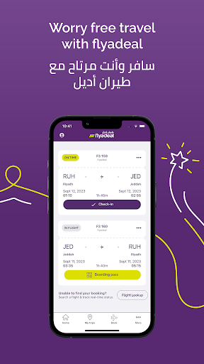 Welcome to the flyadeal app, your gateway to affordable and accessible air travel in the Kingdom of Saudi Arabia and the region. We prioritize value and choice, allowing you to customize your travel experience. App features: Member Profile: • Create a member profile and store all your passengers\ details securely on your phone enjoy a faster booking completion. Search & Book Flights: • Discover and book one-way, round-trip, or multi-city trips quickly and easily. • Easily scan your passport to automatically fill passenger details. • Safely pay using Credit Card, Debit Card and SADAD Manage your Booking: • Modify your flight dates or add extras to your booking (baggage, seats, meals...). Online Check-in: • Check-in online and avoid the queues at the airport. • Keep your boarding pass in your Apple Wallet for easy access. Exclusive Offers: • Stay updated with our special fares and exclusive promotions. • Bilingual Support: Available in both English and Arabic, ensuring seamless communication. Download the app now and Fly for Less with flyadeal.