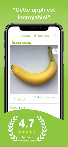 Vous cherchez une application simple pour suivre vos repas ? Vous avez trouvé la bonne application. Seulement 2 robinets pour enregistrer un repas. Essayez-le vous-même. See How You Eat est une application simple de journal alimentaire photo et facile à utiliser qui vous aide à suivre vos repas et à manger régulièrement, tout en prenant des habitudes alimentaires saines. UN SUIVI ALIMENTAIRE SIMPLE, AMUSANT ET EFFICACE : 1. Visualisez tous vos repas quotidiens en un coup d\œil 2. Simple et facile à utiliser - une méthode simple pour enregistrer vos repas 3. Rappels repas 4. Ayez plus d\énergie 5. Atteignez votre poids d\équilibre 6. Prenez conscience de vos habitudes alimentaires 7. Journal alimentaire facile à suivre et à partager avec votre coach Avec See How You Eat, vous voyez en un coup d\œil tous les repas pris au cours d\une journée, ce qui vous incite à faire des choix plus sains. Prendre des photos de vos repas vous incite à modifier vos habitudes alimentaires. Les rappels repas vous aident à manger plus régulièrement, et vous aurez plus d\énergie au fil de la journée. LES AVANTAGES DES PHOTOS DES REPAS : • Vous voyez en un coup d\œil tous les repas de la journée • Vous pouvez facilement enregistrer vos repas • Les photos des repas soutiennent la pleine conscience • Un journal visuel vous aide à modifier vos habitudes alimentaires • Photographier vos repas vous aide à adopter un mode de vie plus sain et à manger de manière plus équilibrée LES AVANTAGES DES REPAS RÉGULIERS : • Vous gardez de l\énergie tout au long de la journée • Il est plus facile de contrôler votre poids ou d\en perdre • Vous n\avez plus envie de plats déséquilibrés • Vous n\avez plus envie de sucre LES AVANTAGES DES RAPPELS REPAS : • En mangeant régulièrement, vous n\avez plus de sensation de faim permanente • En mangeant régulièrement, vous avez plus d\énergie • Vous menez une vie équilibrée • Vous découvrez par vous-même comment manger de manière intuitive • Vous prenez conscience de vos habitudes alimentaires LES AVANTAGES D\UN JOURNAL ALIMENTAIRE : • Des études indiquent qu\un journal alimentaire peut aider une personne à perdre deux fois plus de poids • Les personnes qui utilisent l\application See How Your Eat pour leur journal alimentaire indiquent faire des choix sains, manger plus de légumes et faire attention à la taille des portions consommées • Des études récentes indiquent qu\un suivi alimentaire avec des photos favorise la prise de conscience et la modification des habitudes alimentaires POURQUOI CHOISIR LE JOURNAL ALIMENTAIRE SHYE ? 1. Superbe mosaïque des repas quotidiens avec leurs heures 2. Suivi alimentaire : une méthode simple pour enregistrer vos repas 3. Des repas instinctivement plus conscients 4. Un journal alimentaire qui motive sans gadgets 5. Restez motivés en modifiant vos habitudes alimentaires 6. Des rappels repas pour vous aider à manger plus régulièrement 7. D\options de planification, de suivi et de partage 8. Suivi de la consommation d\eau 9. Journal alimentaire facile à partager avec un professionnel (coach, entraîneur personnel, nutritionniste ou docteur) 10. Vous prenez plus conscience de vos habitudes alimentaires 11. Vous n\avez plus besoin de suivre des régimes interminables et de compter les calories Que vous vouliez vous sentir mieux, avoir plus d\énergie, perdre du poids, gérer votre poids ou manger de manière plus consciente, See How You Eat vous aide à atteindre votre objectif. C\est la façon la plus facile de suivre vos repas et de manger régulièrement. Aucune raison d\avoir faim ! Health Revolution Ltd développe des applications simples à utiliser pour le suivi alimentaire et le coaching nutritionnel. Notre mission est d’aider chacun à découvrir les bases d\une alimentation équilibrée d’une façon adaptée au mode de vie hectique d’aujourd’hui. Nous sommes contre le comptage des calories et les régimes brutaux. Nous soutenons la nutrition intuitive. Notre vision : un monde sans régime.