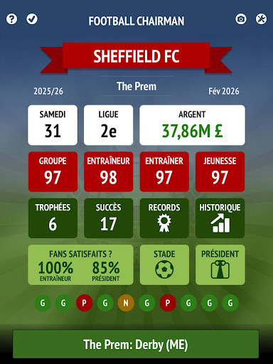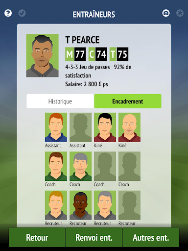 Le grand succès primé des magasins d\applications britanniques est désormais disponible en français ! Bâtissez votre propre empire footballistique : assemblez un club de football en commençant avec une petite équipe hors ligue et débrouillez-vous pour arriver au sommet des sept divisions. Embauchez et renvoyez des entraîneurs, développez votre stade, négociez des transferts, signez des contrats de joueur et de sponsor... tout cela en gardant les fans et les banquiers satisfaits. Depuis leur lancement, les jeux Football Chairman ont été téléchargés plus d\un million de fois et ont remporté de nombreux prix comme celui du meilleur éditeur 2016, 2014 et 2013 d\Apple ou le celui du meilleur jeu 2015 de Google Play. Cette version du jeu est parfaitement gratuite et jouable, mais certaines fonctionnalités non indispensables de la version \Pro\ ont été désactivées. Votre carrière de président durera 30 saisons, puis vous devrez prendre votre retraite. Parviendrez-vous à créer le meilleur club qui soit avant cela ? Les fonctionnalités incluent : - Gameplay palpitant et addictif - Menez votre club dans les sept divisions anglaises - Embauchez et renvoyez des entraîneurs et leur personnel d\encadrement - Négociez de nouveaux contrats, des jeunes inconnus aux superstars internationales - Développez votre stade, du minuscule terrain au \super stade\ de 120 000 places - Investissez dans votre académie des jeunes et vos installations d\entraînement - Négociez des contrats de sponsor et définissez le prix des billets - Proposez de nouveaux contrats et bonus à vos meilleurs joueurs - Placez les membres superflus sur la liste des transferts ou prêtez-les - Et n\oubliez pas : c\est vous le patron ! Bonne chance, vous en aurez besoin !